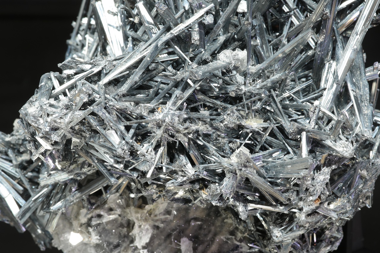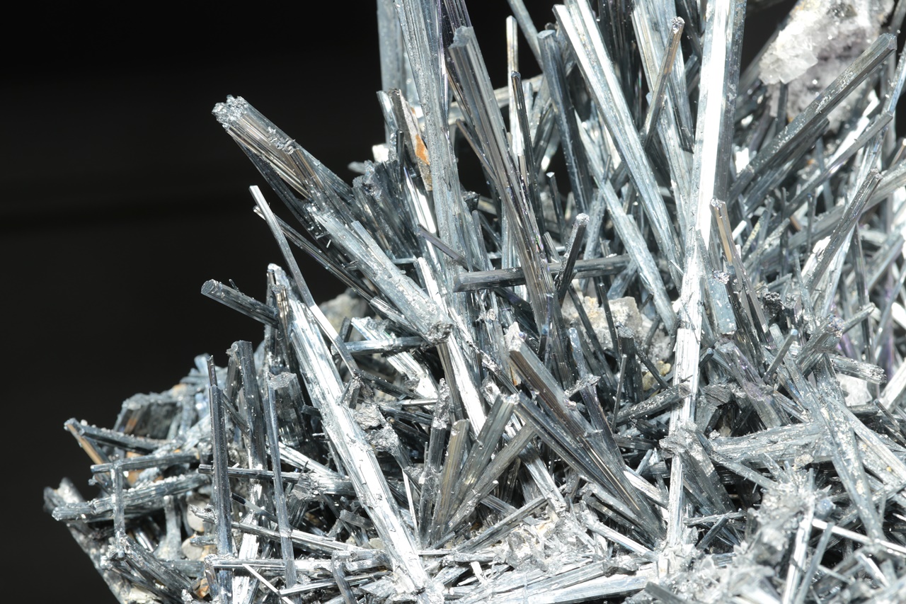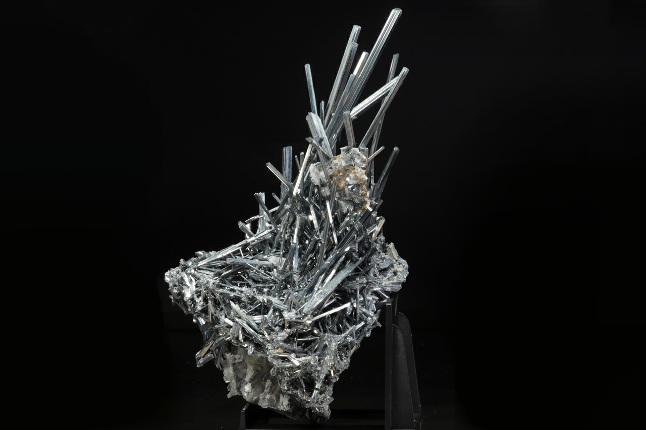Nádherný vzorek lesklých jehlic antimonitu až 15 cm velkých.
