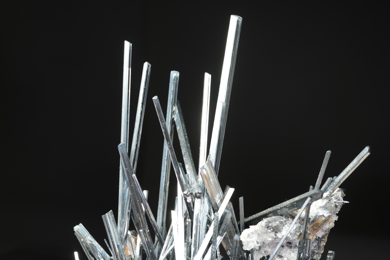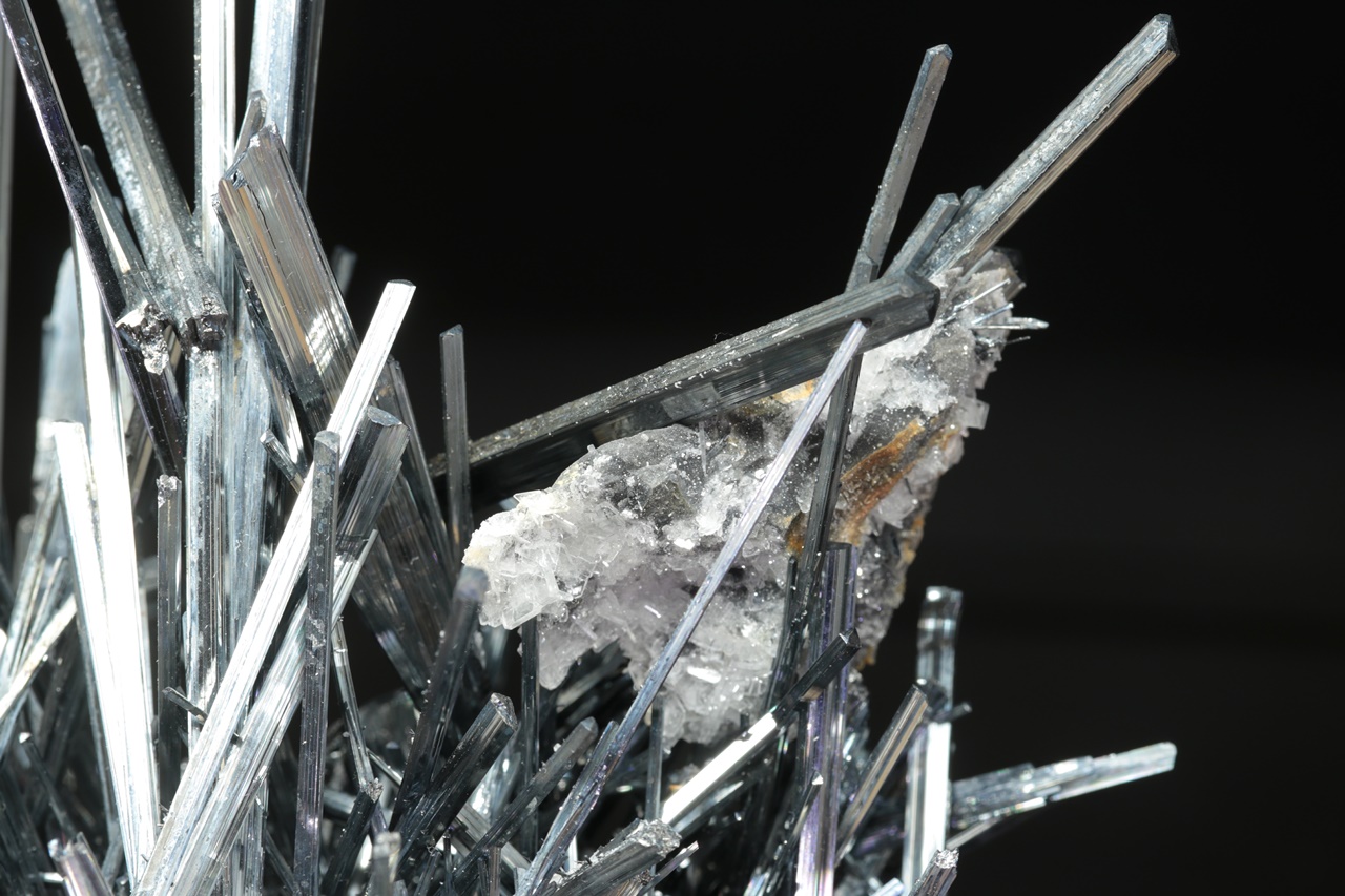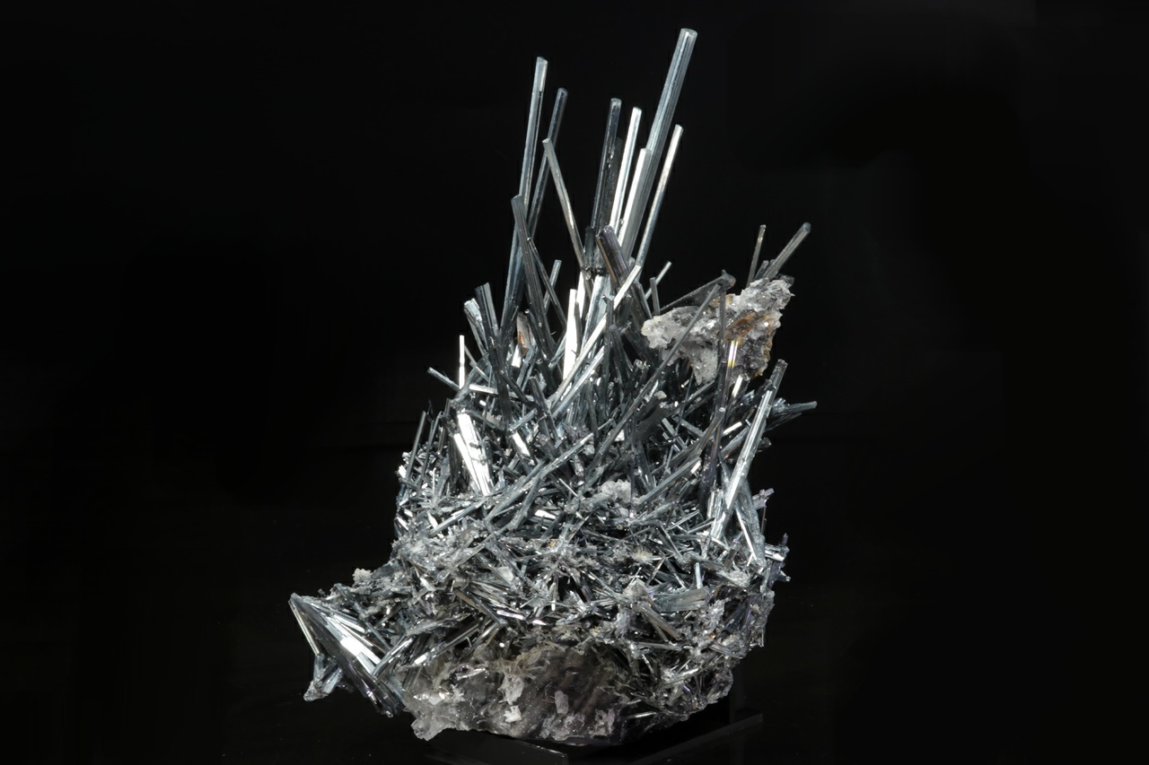 Nádherný vzorek lesklých jehlic antimonitu až 15 cm velkých.