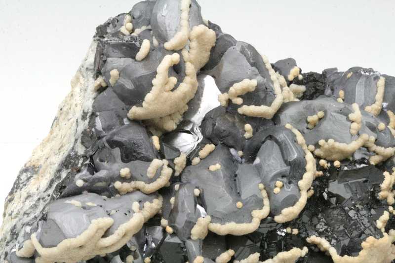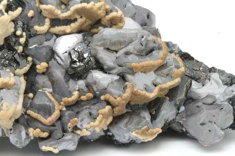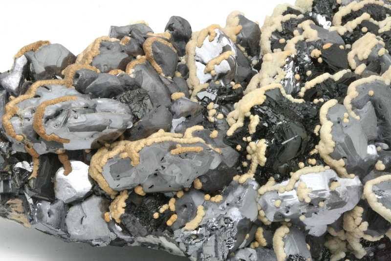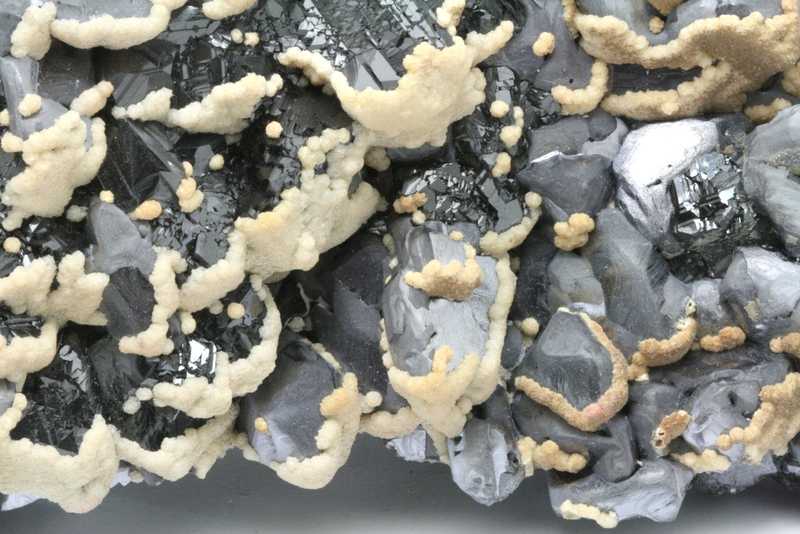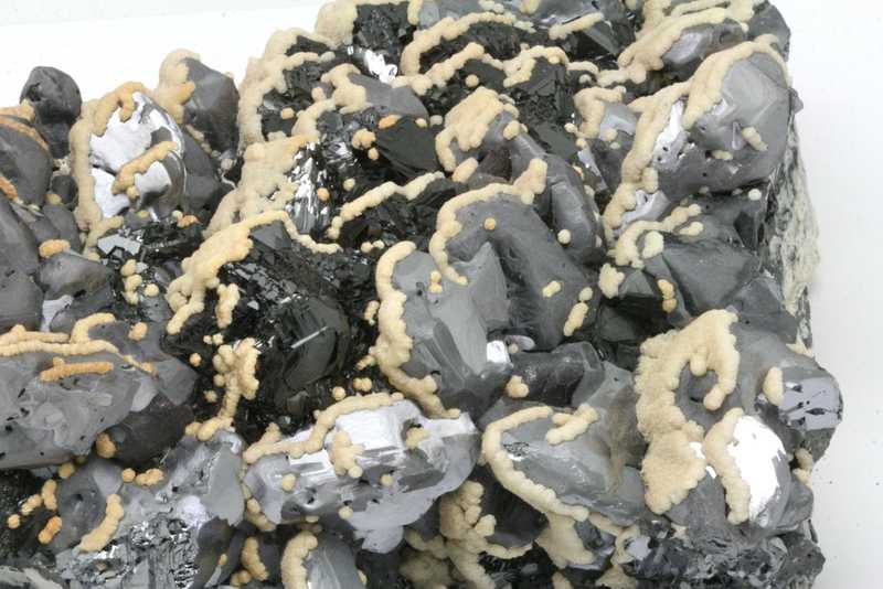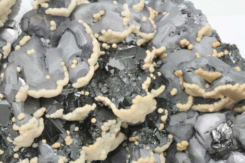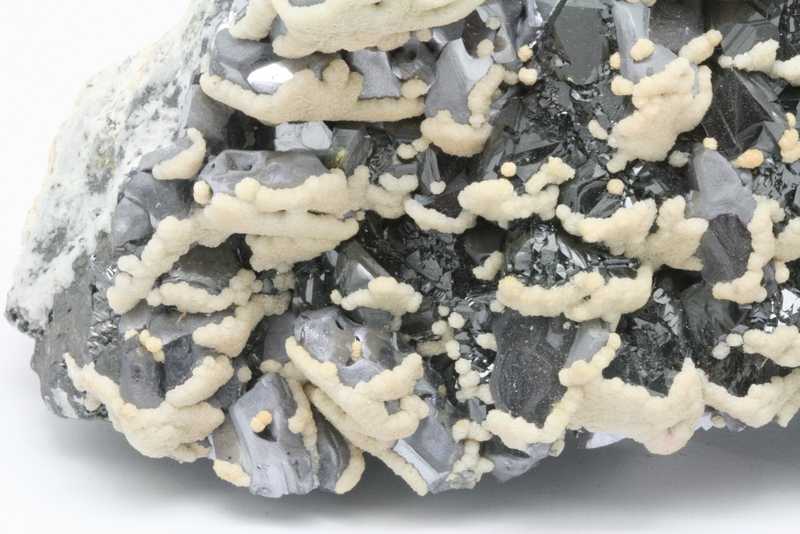 Herrliche Probe von Galenit mit Sfalerit aus der bulgarischen Lagerstätte Madan. Sehr hochwertige Probe von unkonventionellen Galenit-Kristallen bis zu 40 mm Größe, begleitet von dunkel schwarzen Sfalerit-Kristallen, die mit Dolomit bewachsen sind .