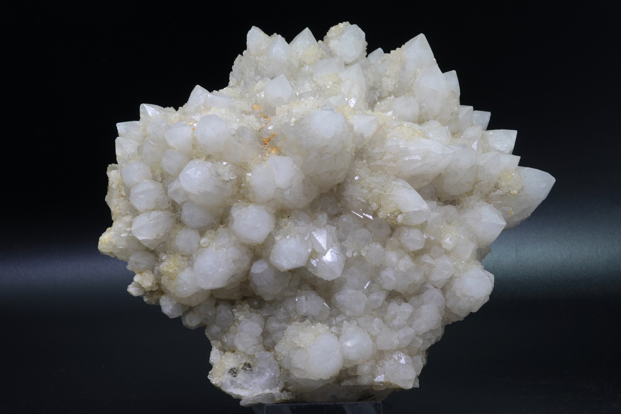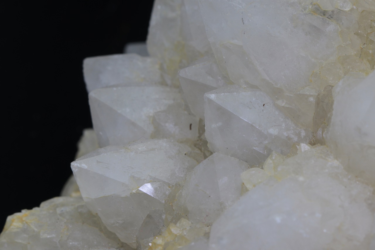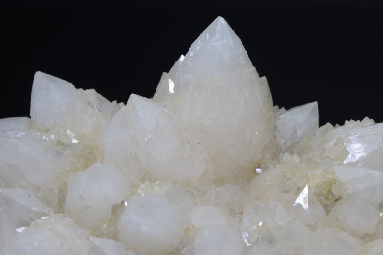 Große Druse radial gewachsener Quarzkristalle. Jeder Kristall ist von kleineren, hypoparallel verwachsenen Kristallen umgeben .