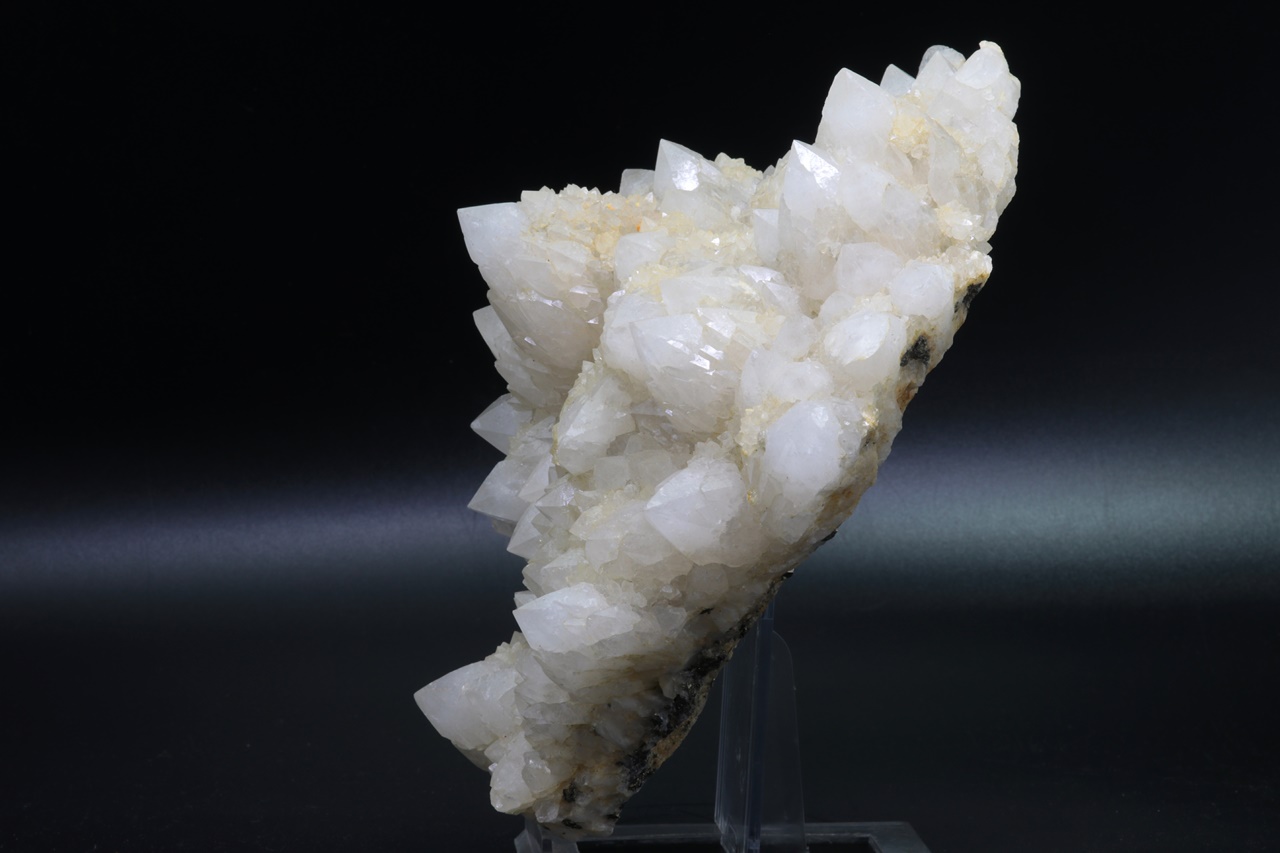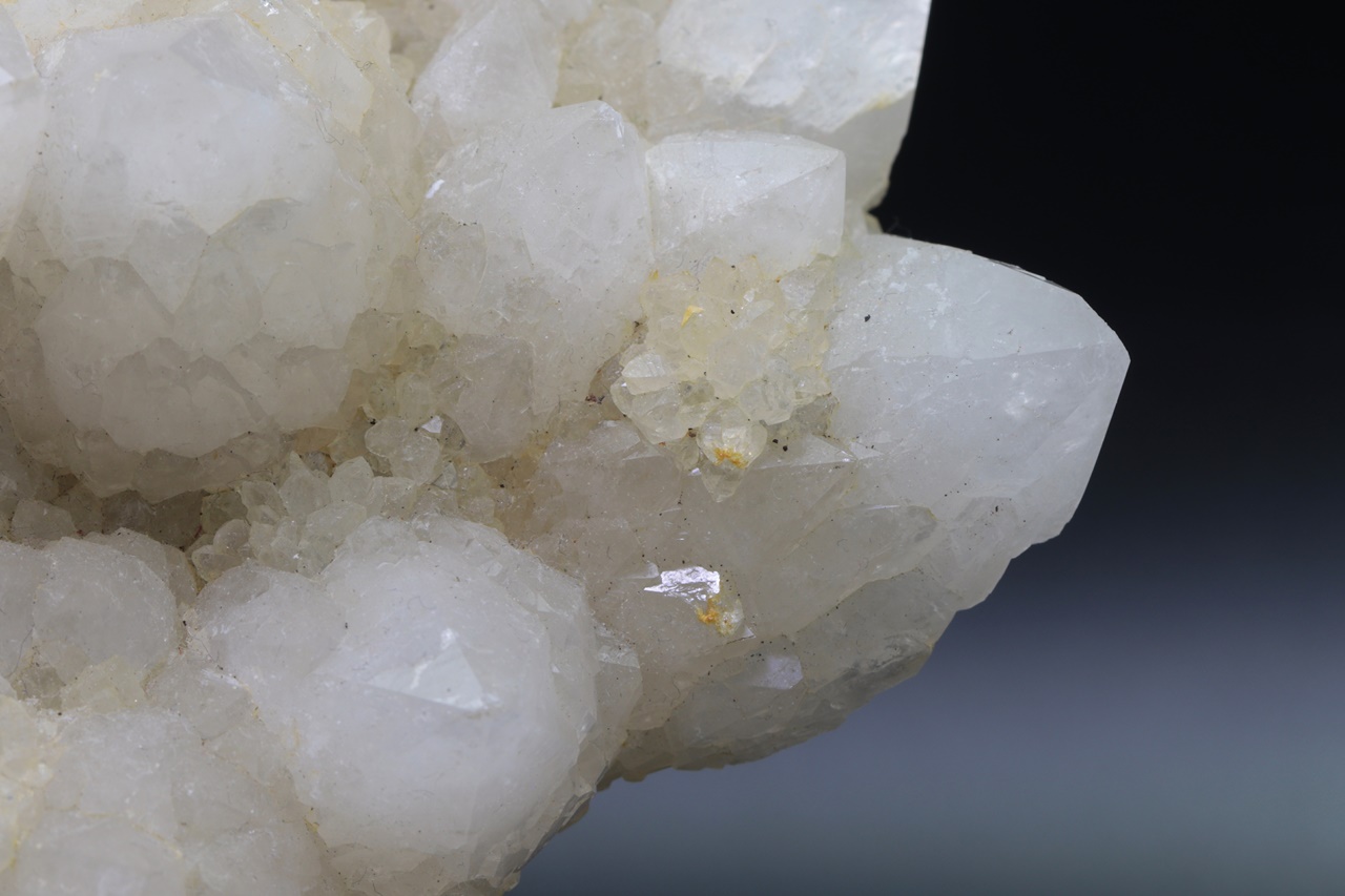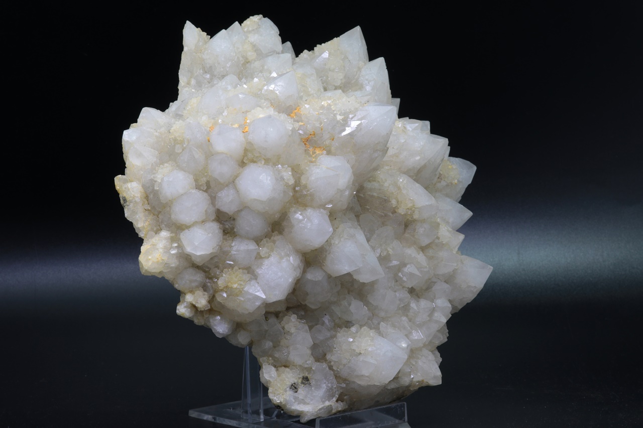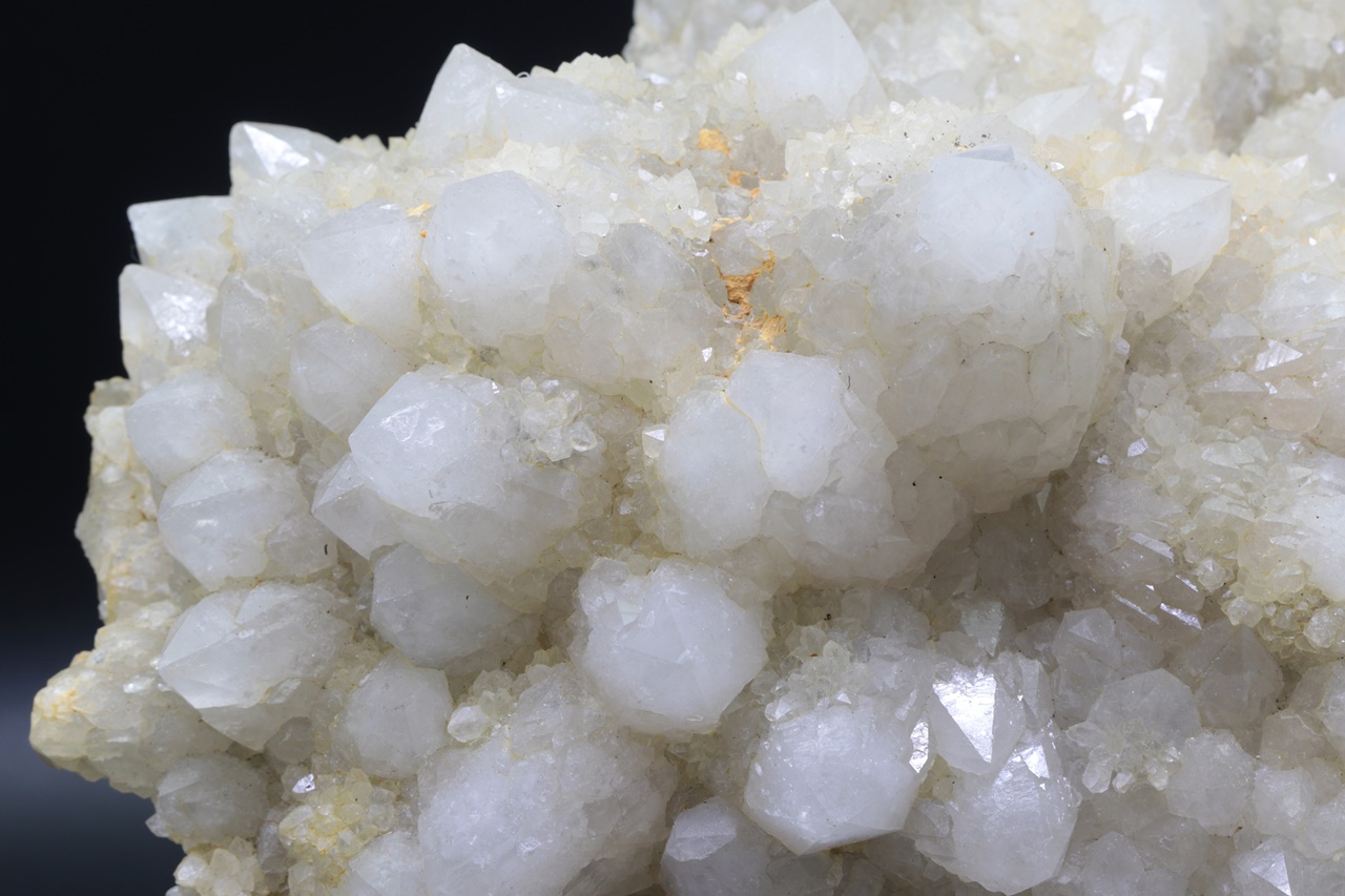 Große Druse radial gewachsener Quarzkristalle. Jeder Kristall ist von kleineren, hypoparallel verwachsenen Kristallen umgeben .