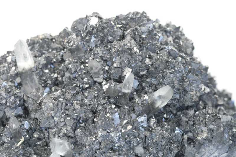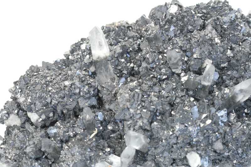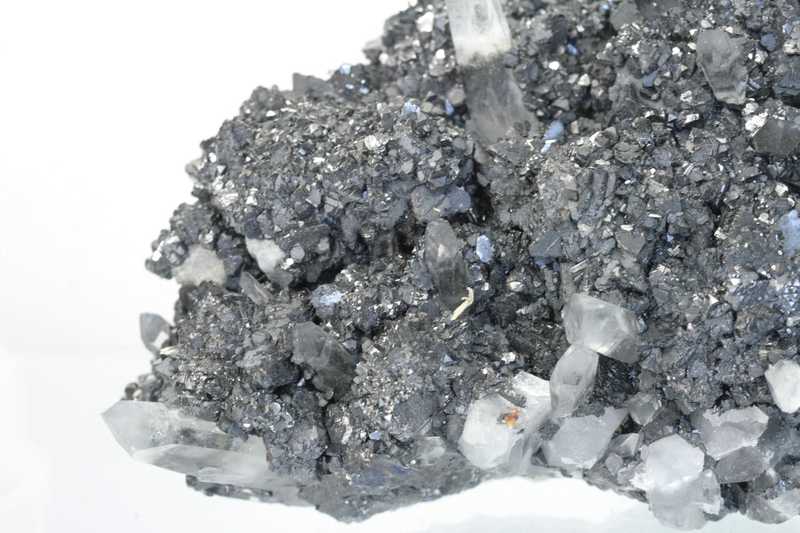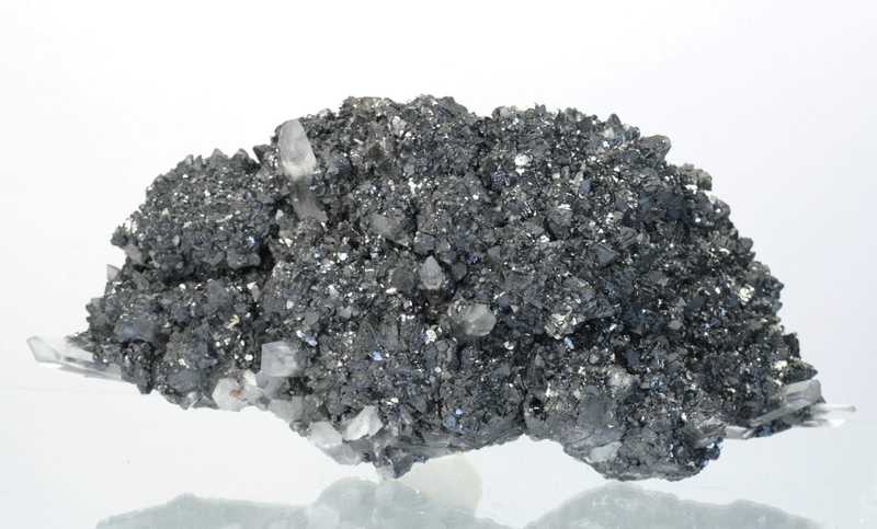 Sehr schöne Probe von Sfalerit mit bis zu 5 cm langen Quarzkristallen aus der bulgarischen Lagerstätte Madan. Eine absolut einzigartige Druse von schwarzen metallisch glänzenden Sfalerit-Kristallen, zwischen denen farblose Quarzkristalle wachsen.