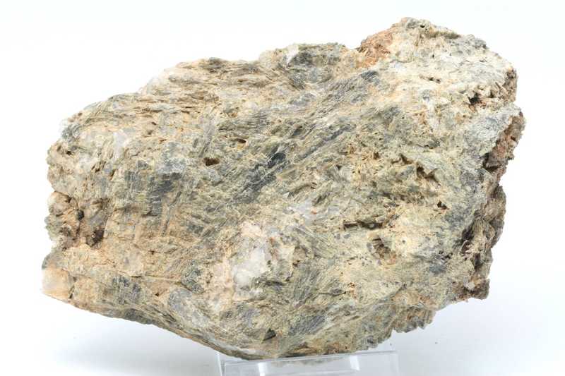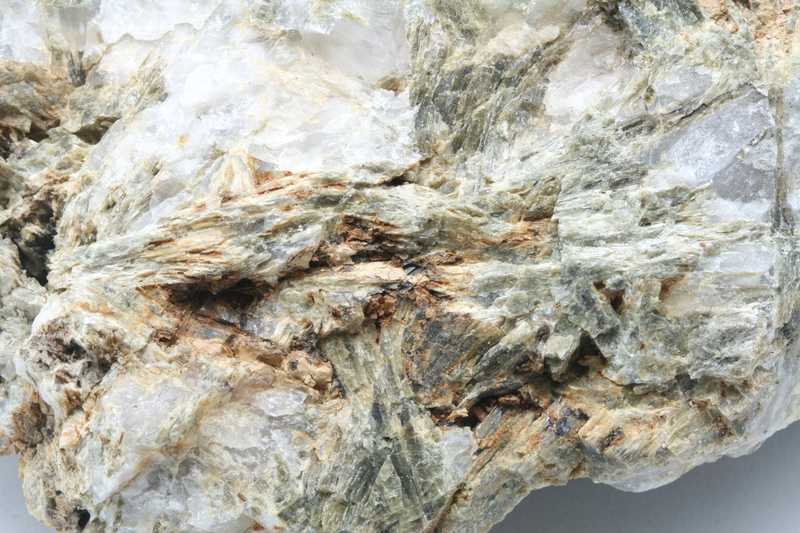 Probe aus Vesuvian von Žulová. Grüne, säulenförmige Kristalle von Vesuvian bis zu 9 cm lang.