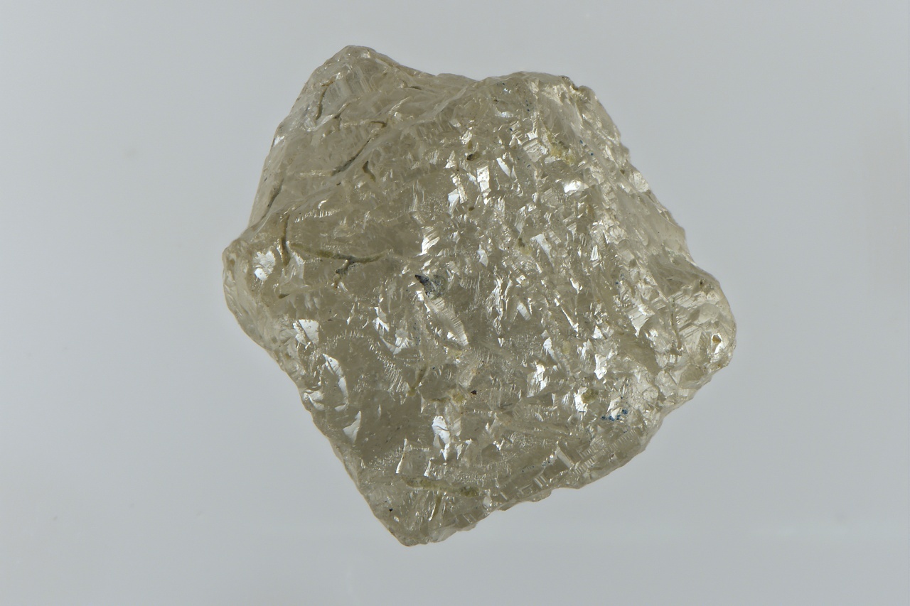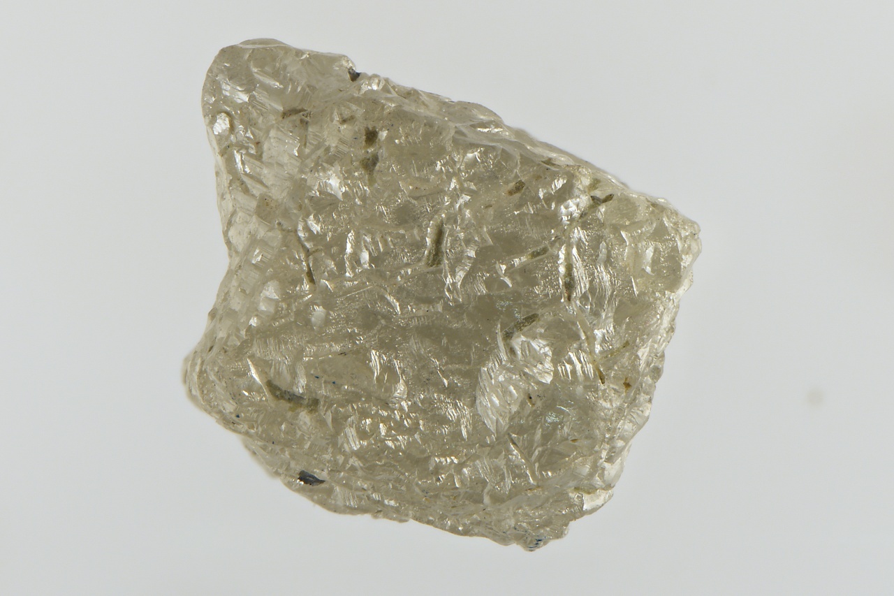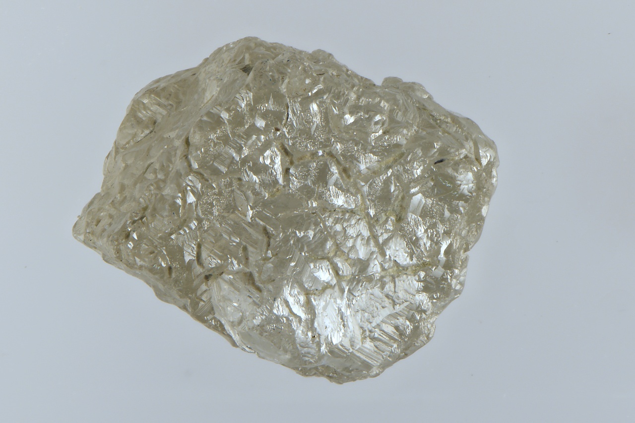 Freikristall begrenzt durch zahlreiche unvollständige, hochglänzende Flächen. Natürlicher kristalliner, durchscheinender gelblicher Diamant aus der Republik Südafrika.