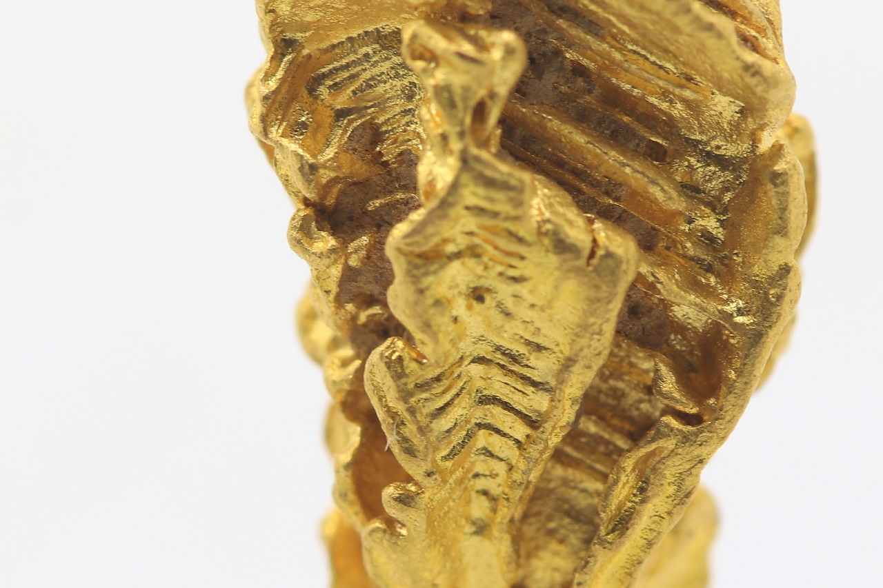 Aggregat von Goldkristallen mit deutlichem skelettartigem Wachstum.
