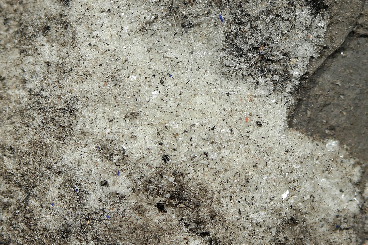 Zunahme kleiner Kristalle von weißem Organolith aus der Typlokalität.