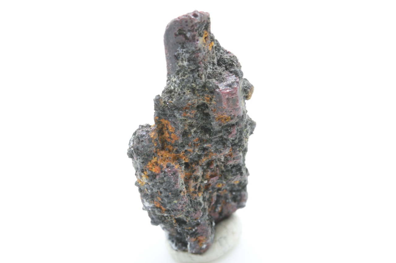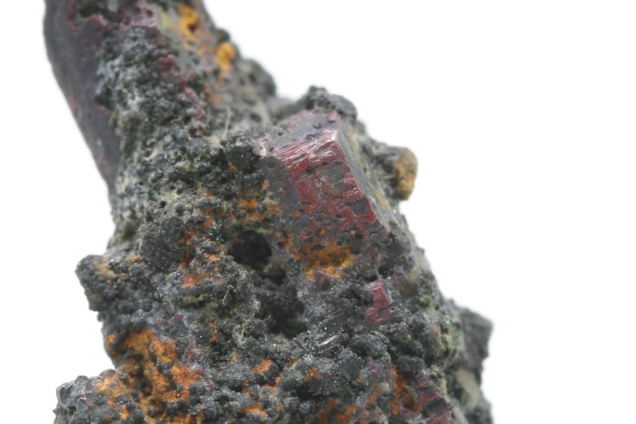 Intensiv roter Kristall des seltenen Sulfoarsenits von Thallium aus dem Typlokal. Die Größe des Kristalls beträgt 3 mm.
