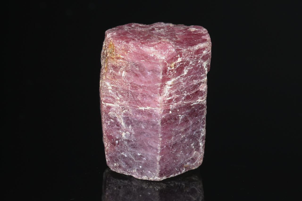 Freistehender säulenförmiger sechseckiger Kristall von violettrotem Korund – Rubin, Größe 17 mm.