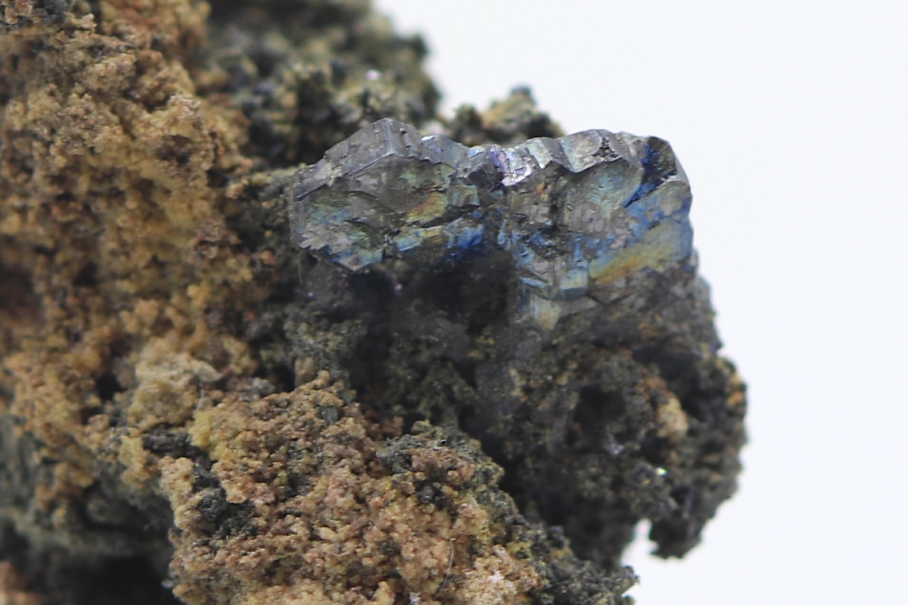 Schwarzer, metallisch glänzender Kristall von Sulfoantimonid des Silbers, 8 mm groß.