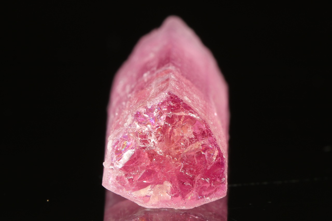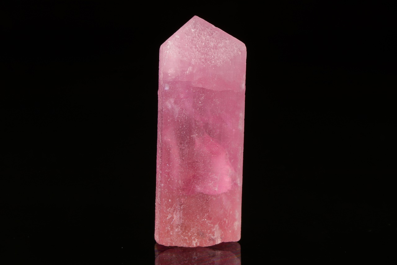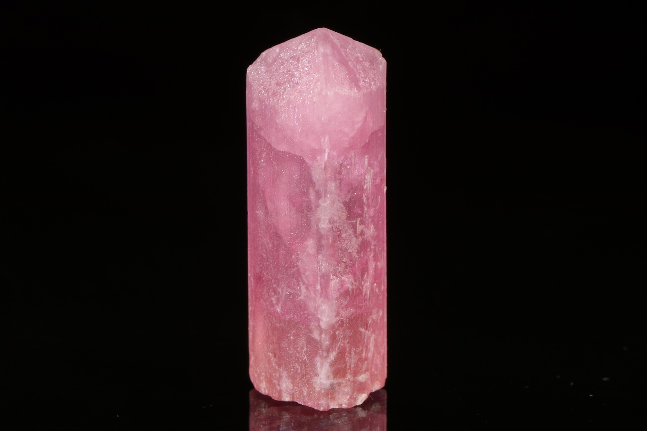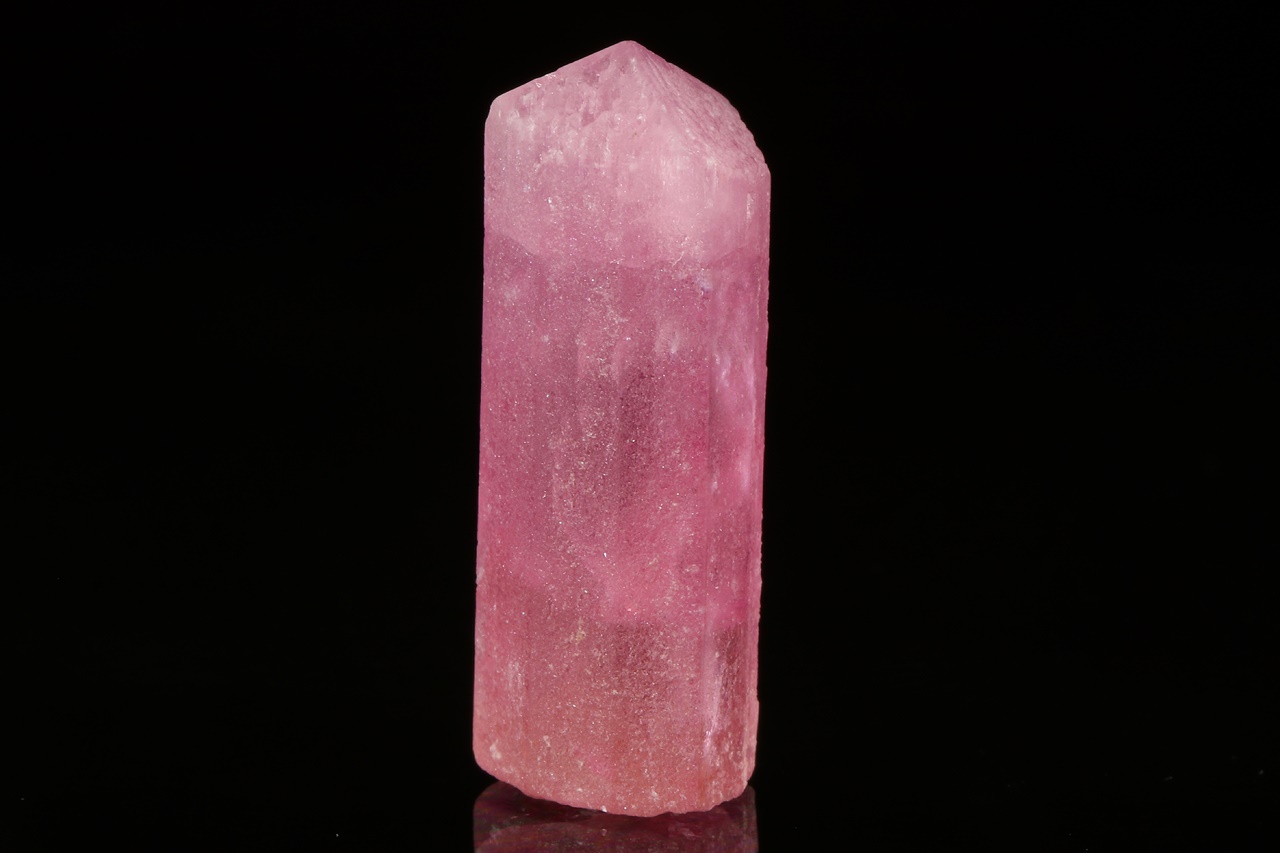 Rosa Turmalinkristall mit mattierter Oberfläche aufgrund von natürlichen Ätzungen aus einer bekannten russischen Lokalität .