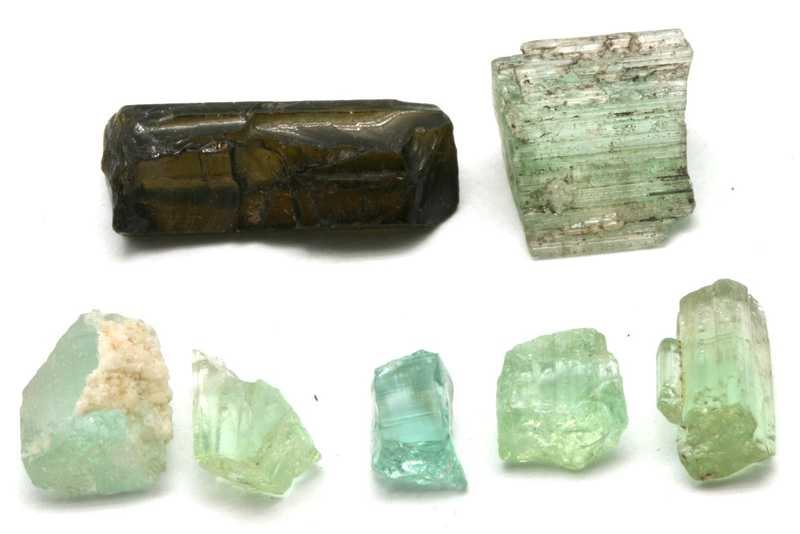 Stücke von grünem Turmalin Verdelith. Kästchen mit Stücken von Verdelith .