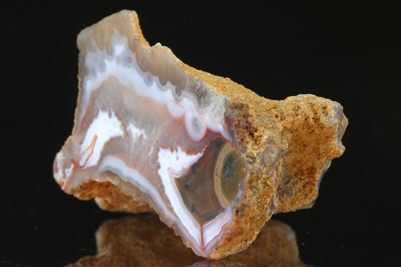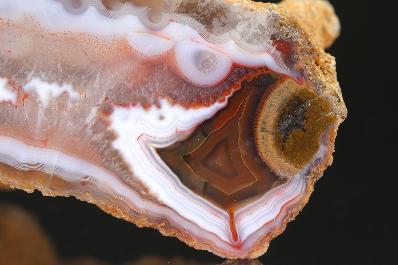 Polierter Schät-Probe mit sehr bunter Zeichnung.