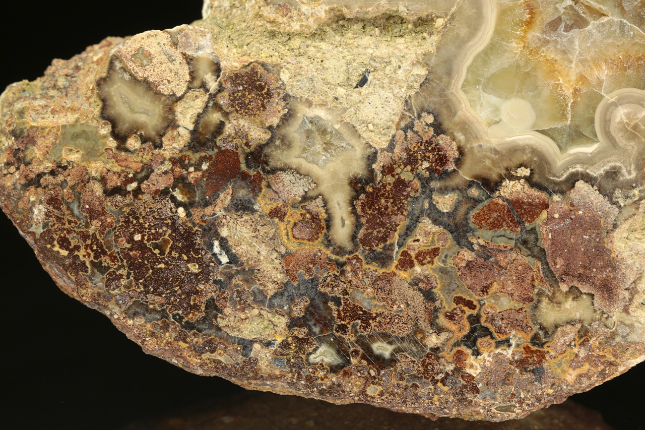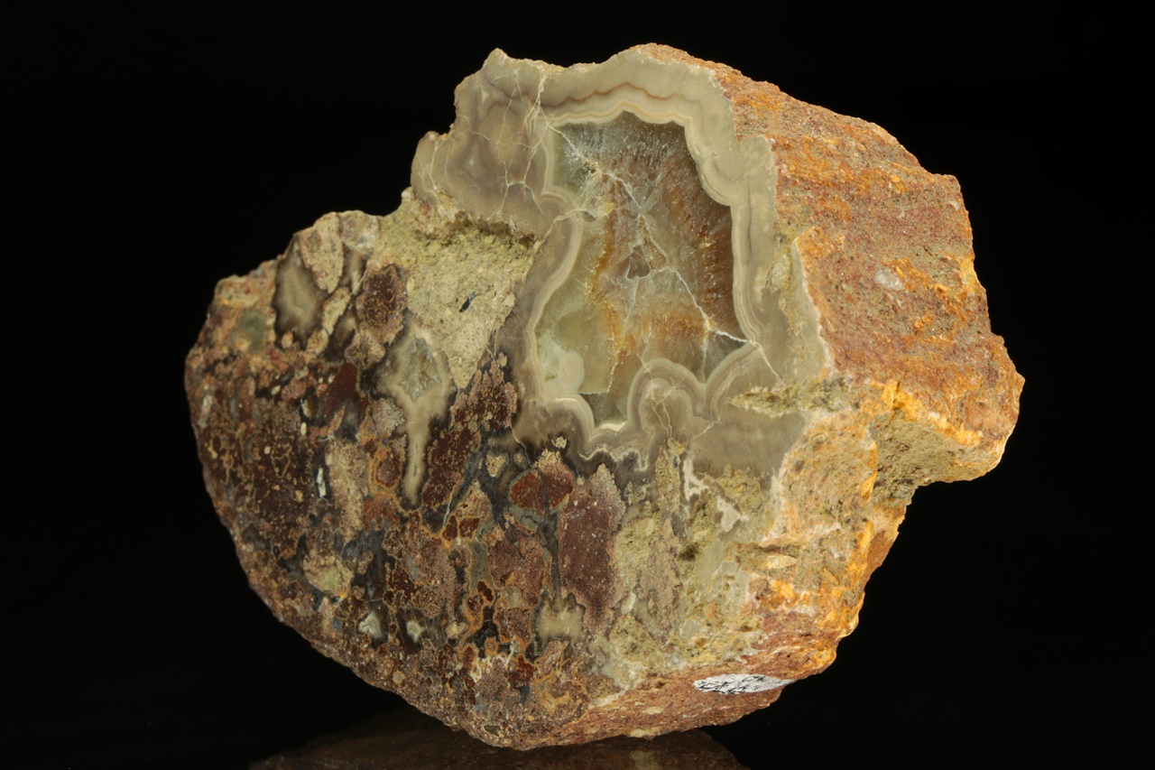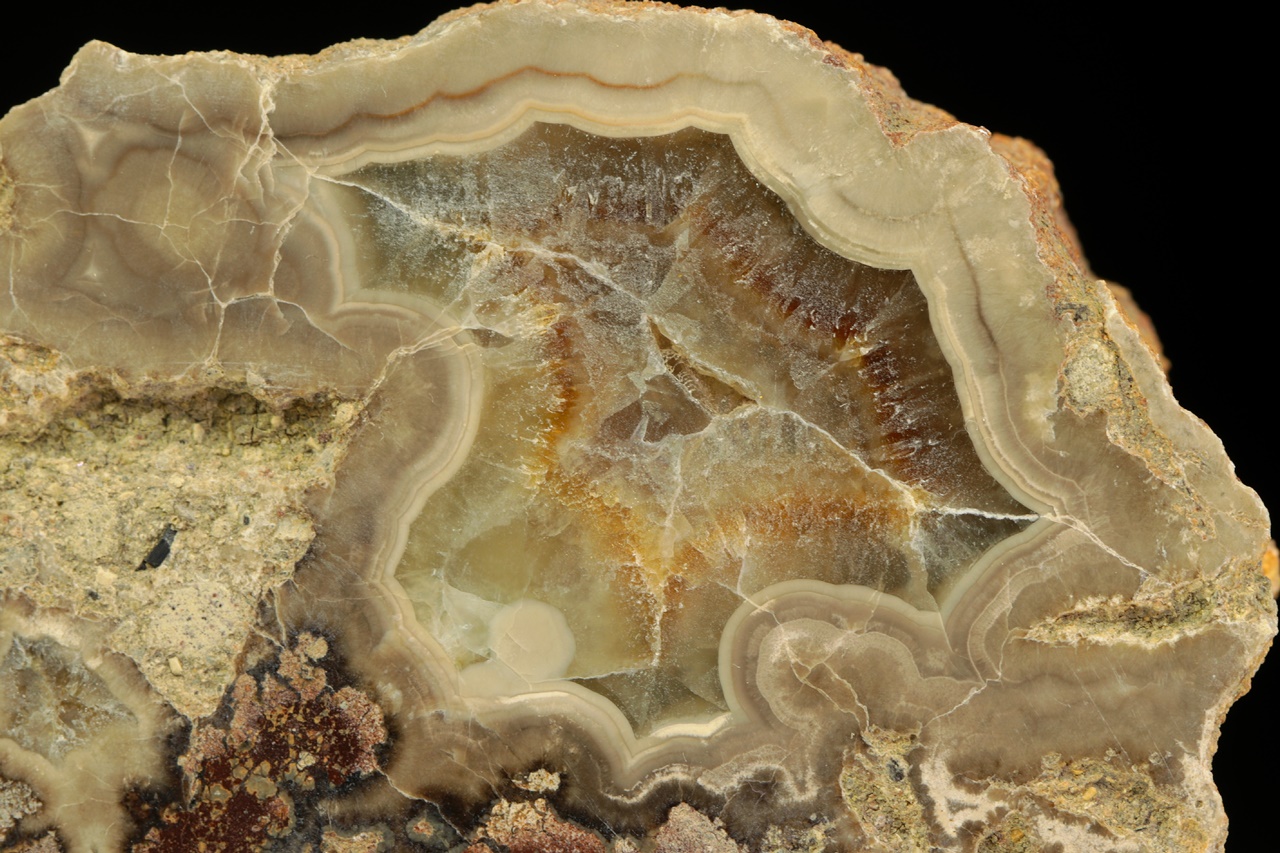 Geoda vyplněná béžovo hnědým vrstevnatým aragonitem.