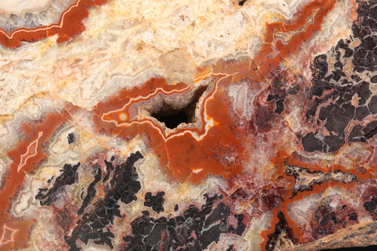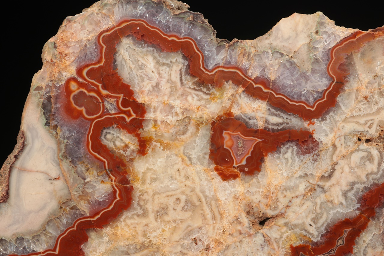 Nádherná, neobvykle velká ukázka achátu z vyhlášené krušnohorské lokality s typickou červenou linkou.