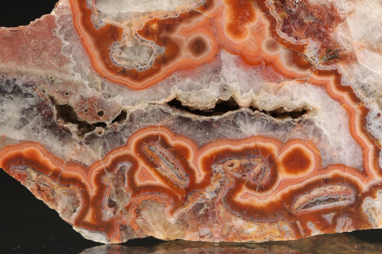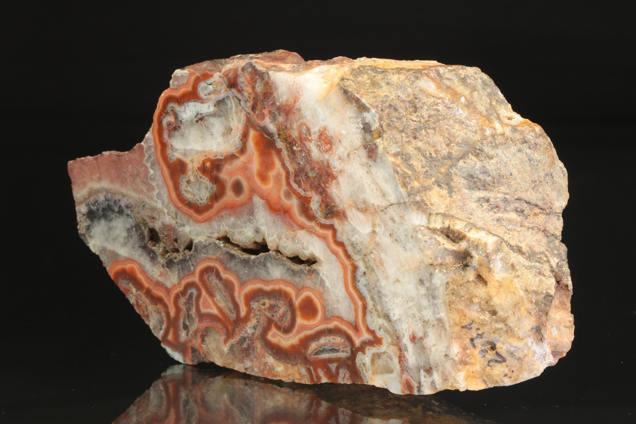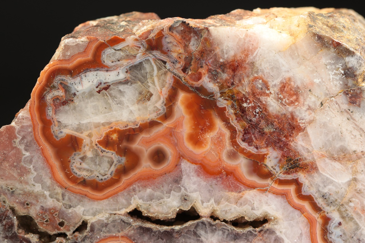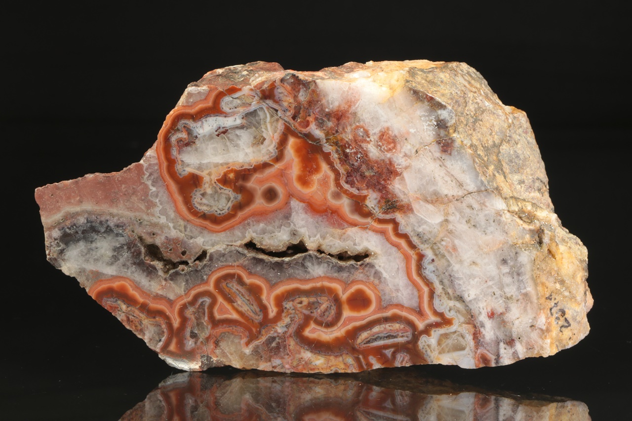 Nádherný achát z vyhlášené krušnohorské lokality s krásnou červenou linkou.
