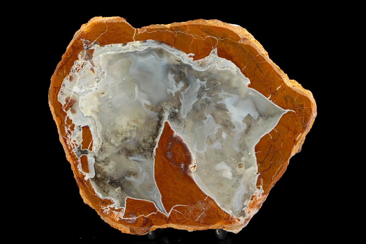 Beige Achát mit hellem, teilweise durchscheinendem Zentrum. Acháty aus dieser Gegend werden auch „Thunder Eggs“ genannt.