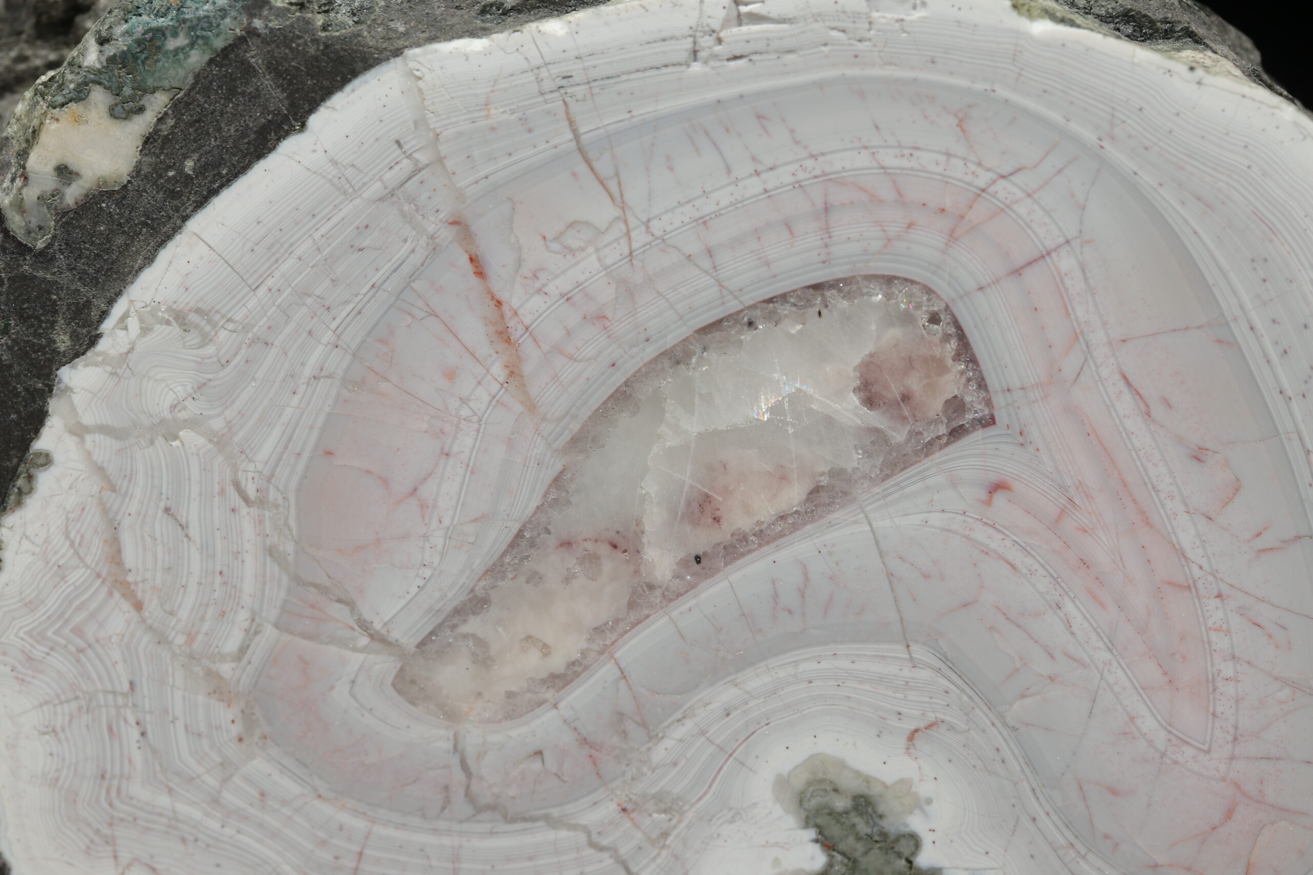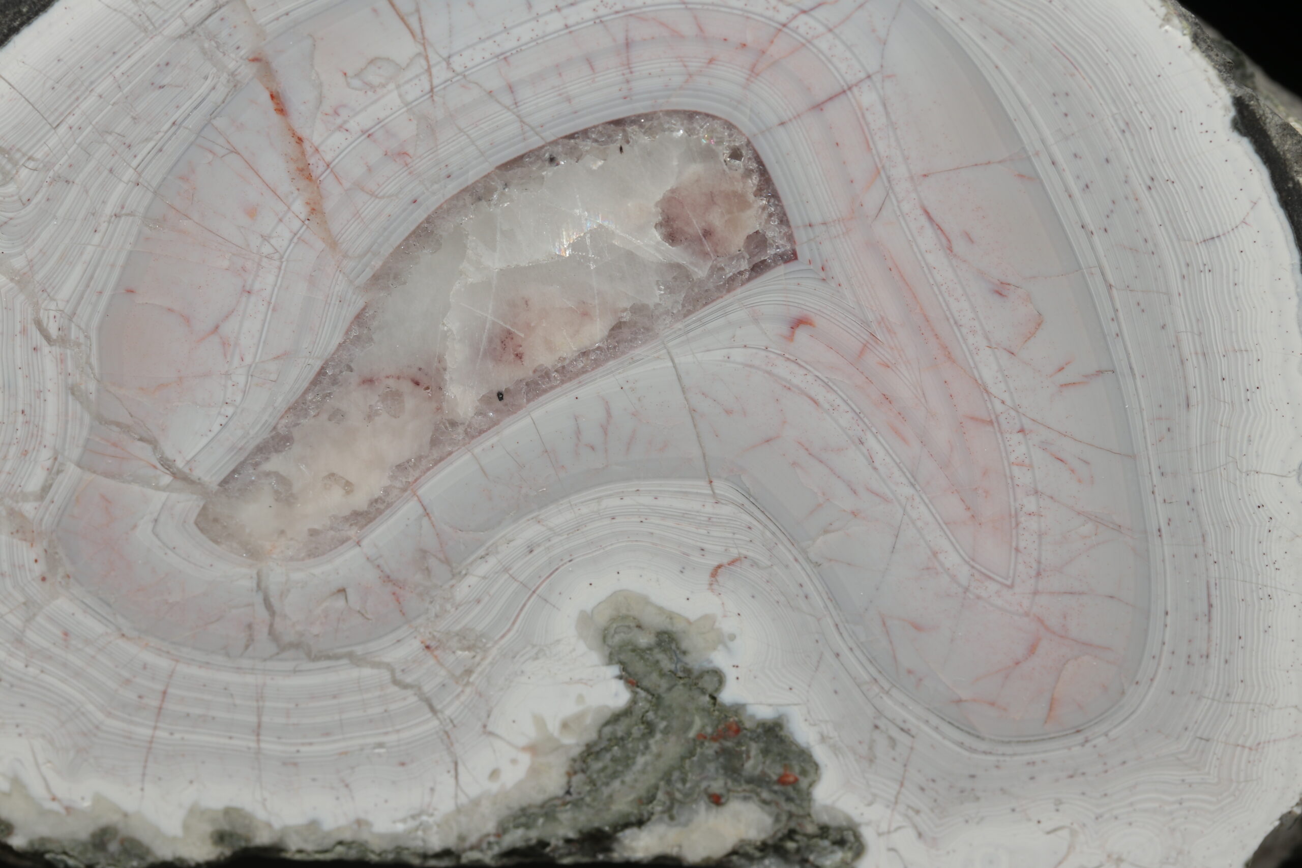 Lange Achatspitze mit interessanter Zeichnung. Die Spitze ist perfekt abgegrenzt und von der Vorderseite poliert.