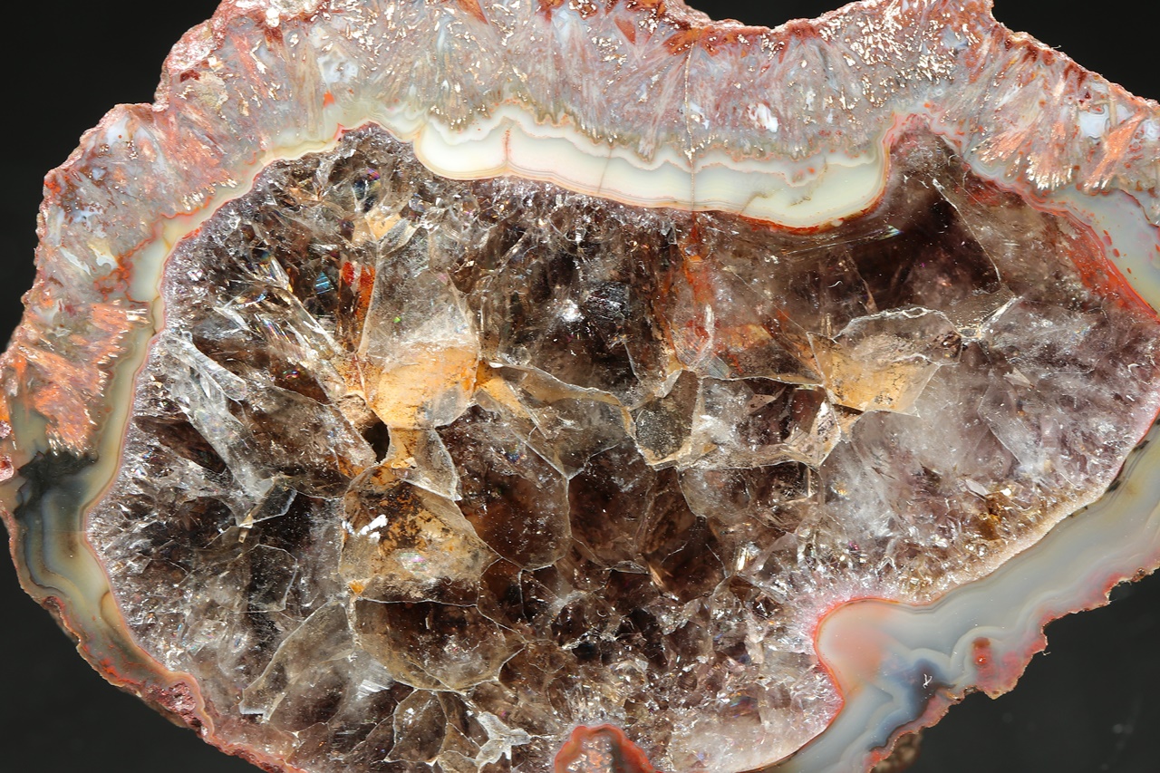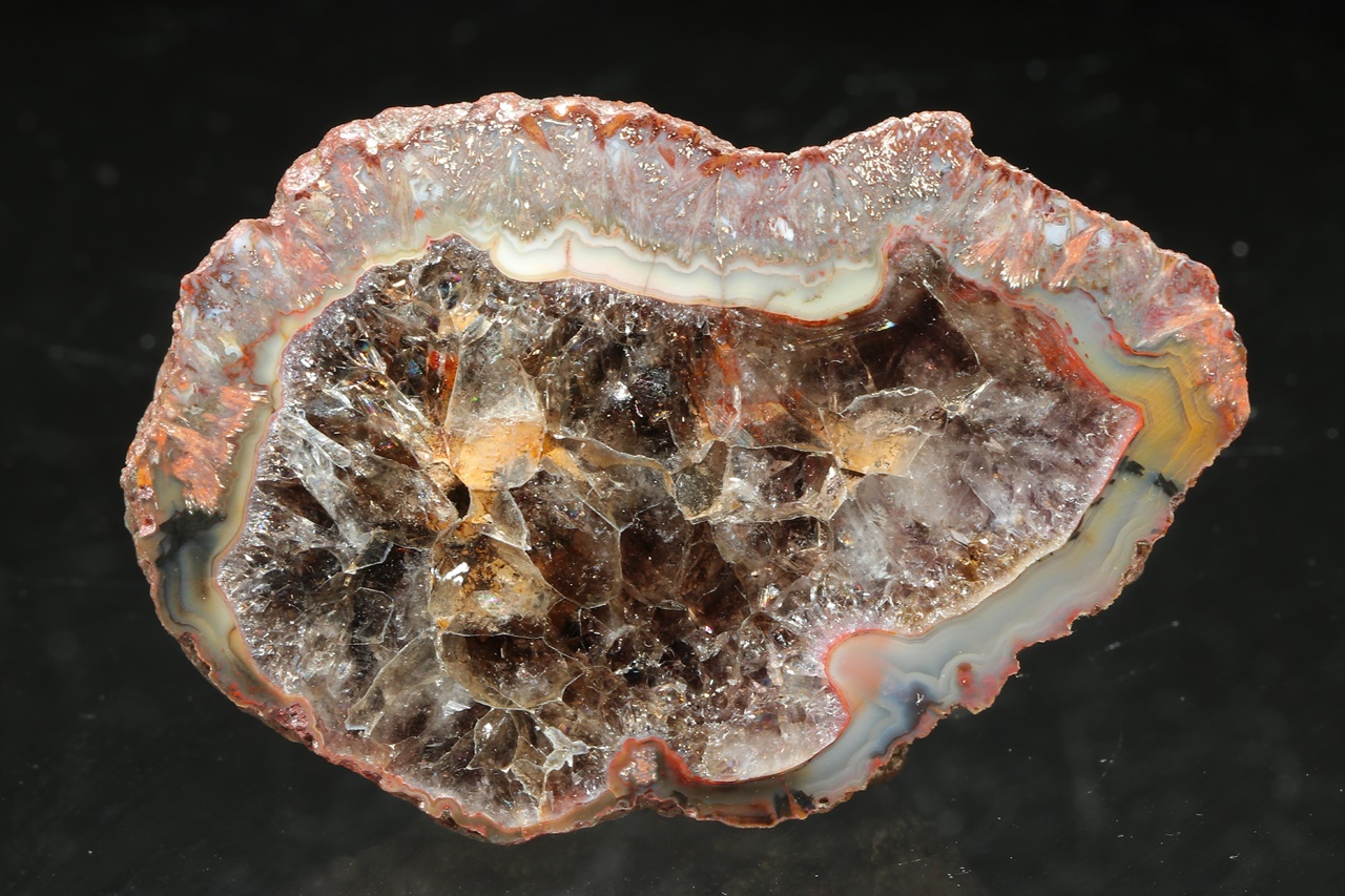 Achat mit einem kristallinen Zentrum, das aus Záhněda besteht.