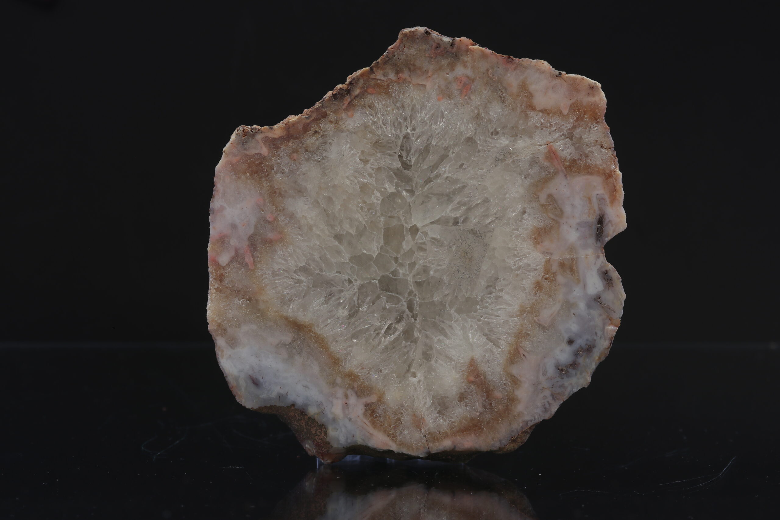 Muster des Achats mit interessanter Zeichnung, im Zentrum des Musters können Quarz-Kristalle beobachtet werden. Das Muster ist nahezu perfekt begrenzt. Das Muster wurde im Jahr 1993 gefunden.