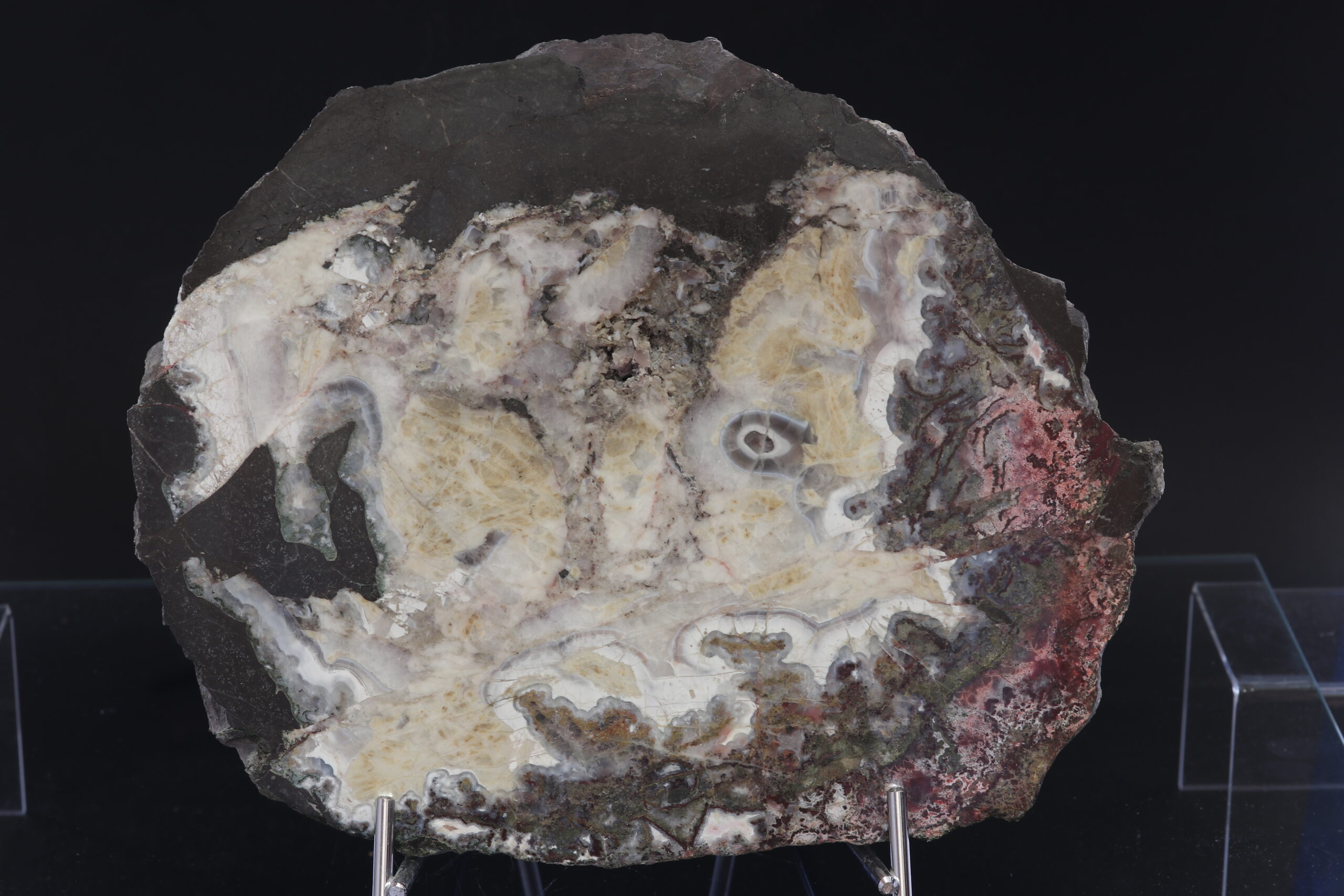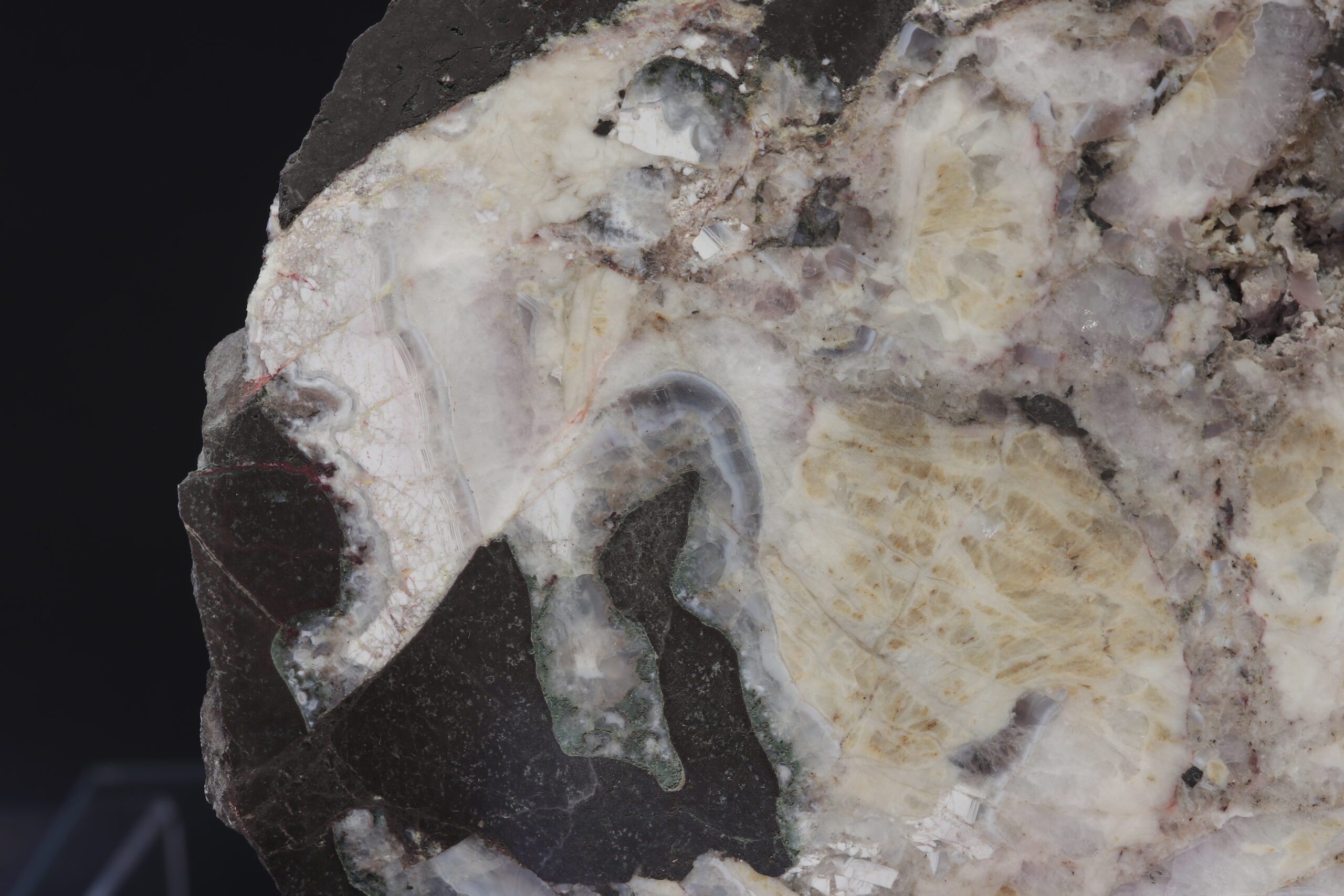 Außergewöhnlich großer Achat aus dem Steinbruch bei Frýdštejn. Die Stufe ist auch aus geologischer Sicht sehr interessant, da auf der Stufe tektonische Verschiebungen beobachtet werden können .