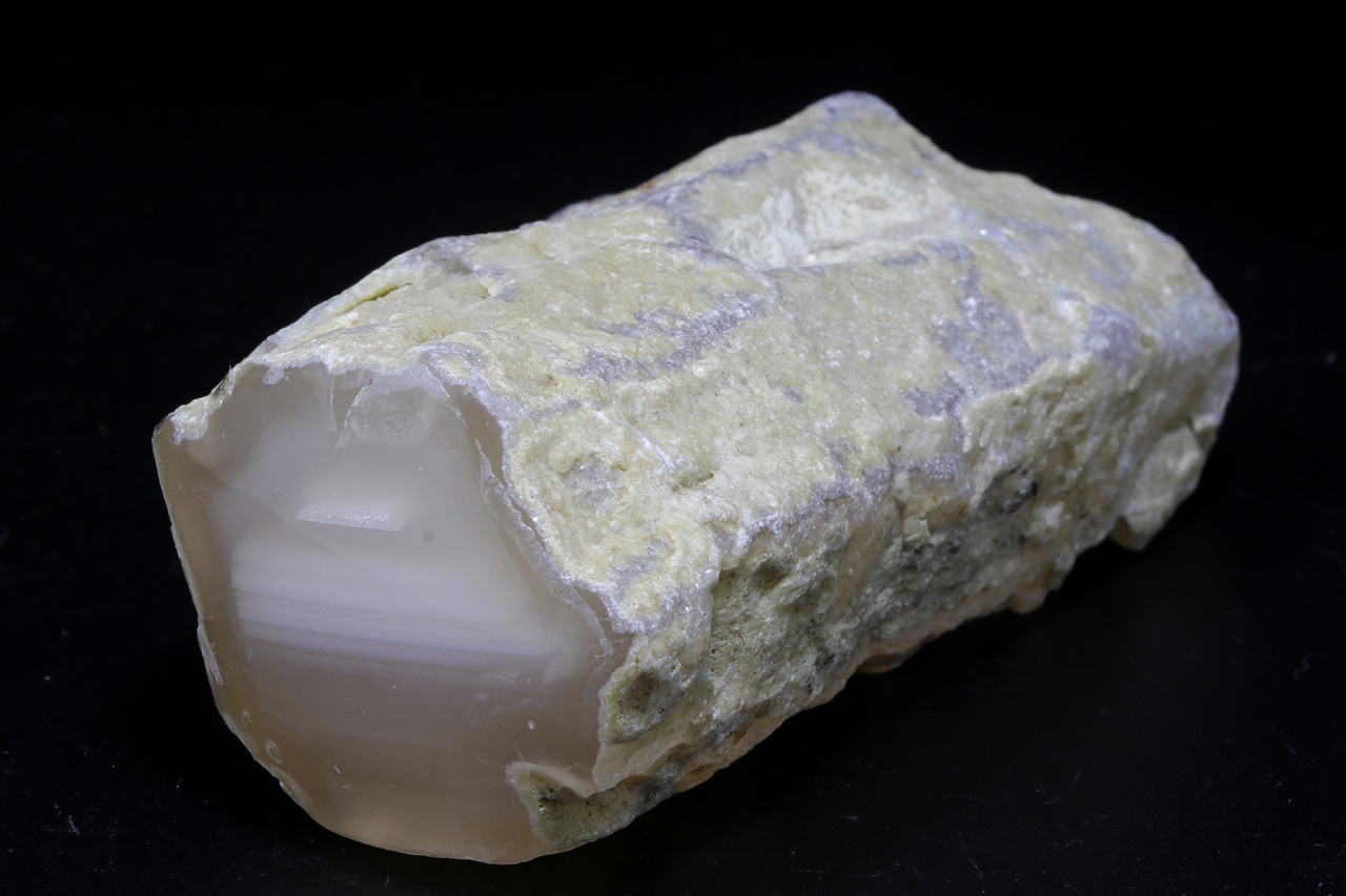 Interessantes Exemplar von Achat, der in einen Hohlraum nach prähistorischem Holz gewachsen ist .