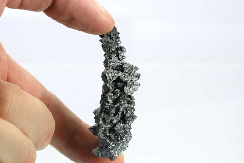 Sehr schönes Silbersulfid-Muster von der Lokalität Imiter, Marokko. Eine Probe des kristallisierten Aggregats von glänzendem silbergrauem Akanthit.