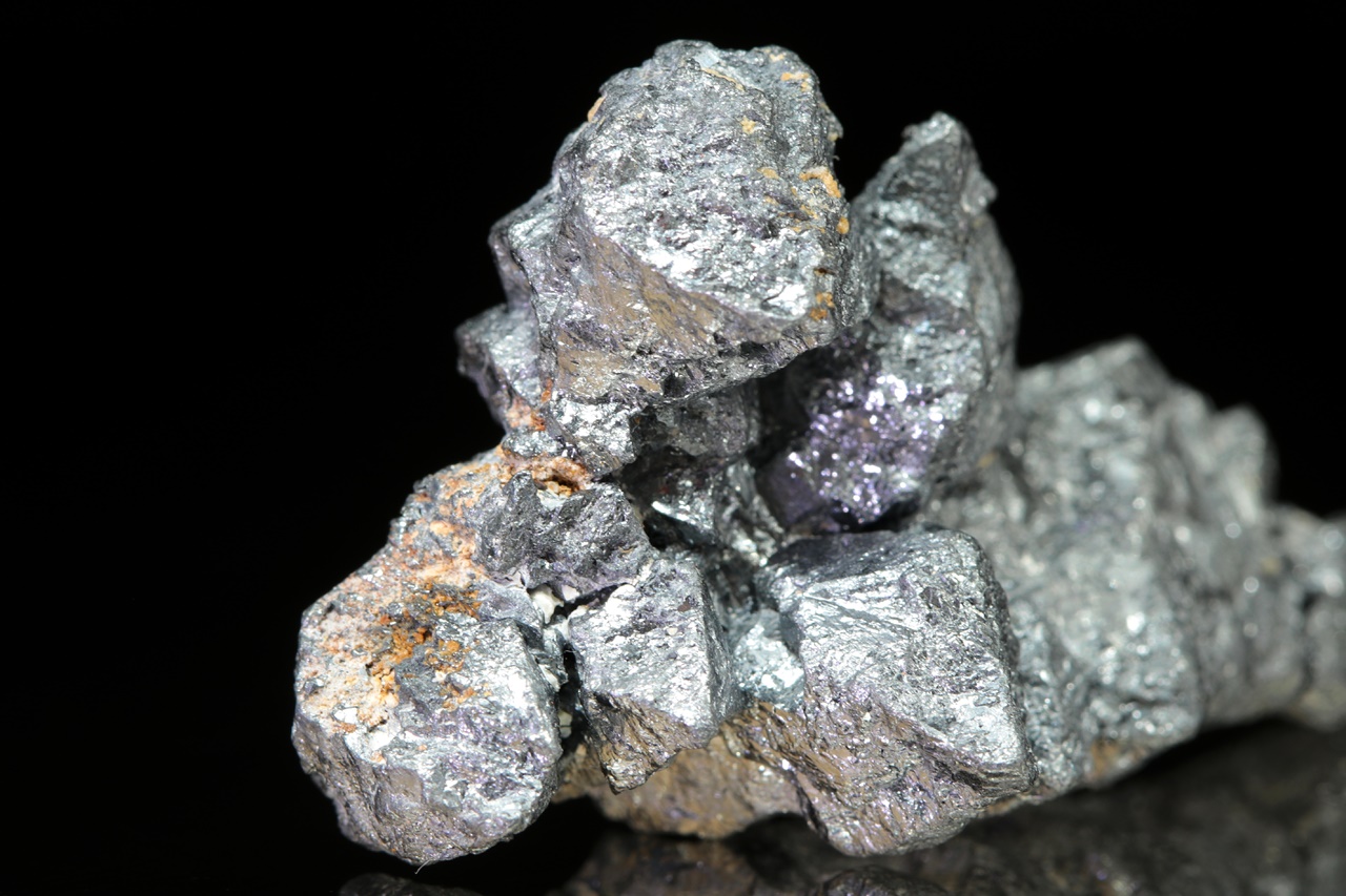 Ästhetischer, hypoparalleler Cluster metallisch glänzender Akanthit-Kristalle bis zu 1 cm Größe.