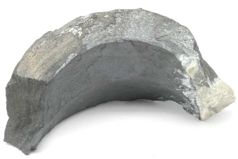 Qualitativ hochwertige Stufe von Allemontit aus Příbram. Probe von schwarzem Allemontit in Form eines „C“ .