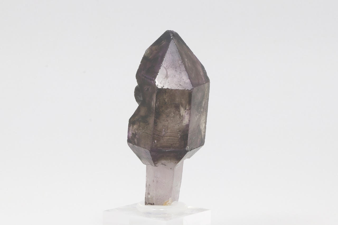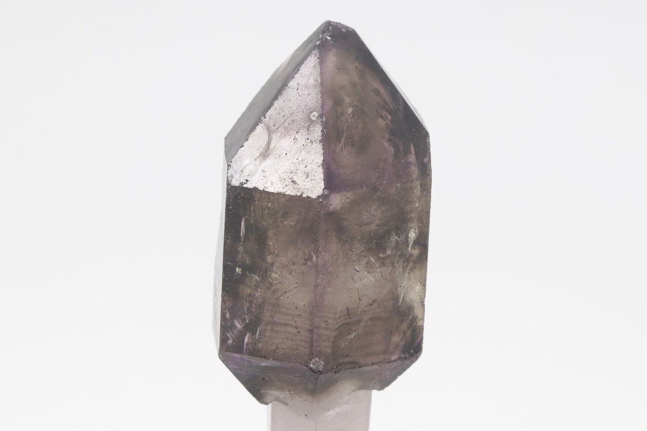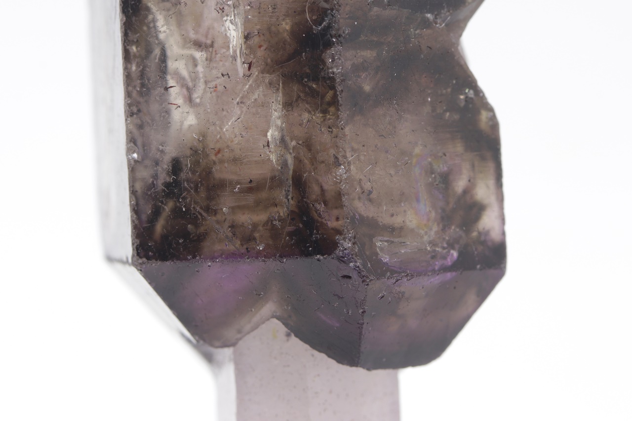 Wunderschönes Beispiel eines dunklen, stabförmigen Amethysts, gewachsen auf einem weißen Fuß. Die Größe des Stabes beträgt 50 mm.