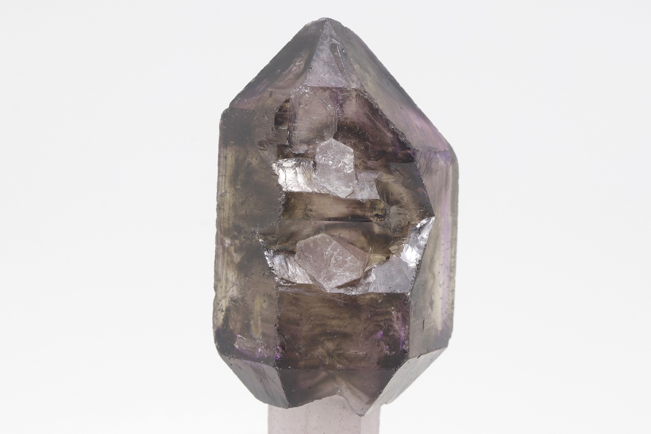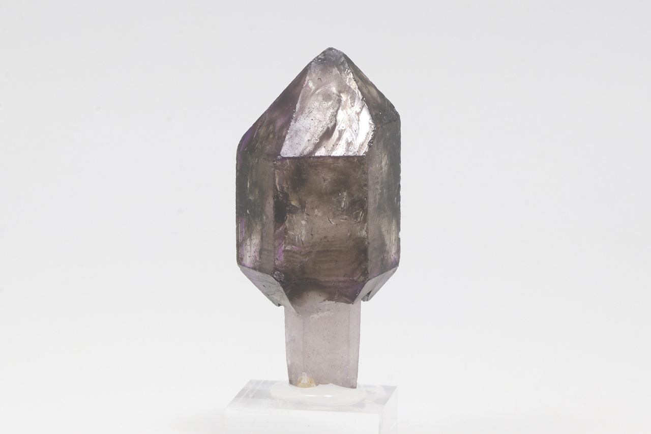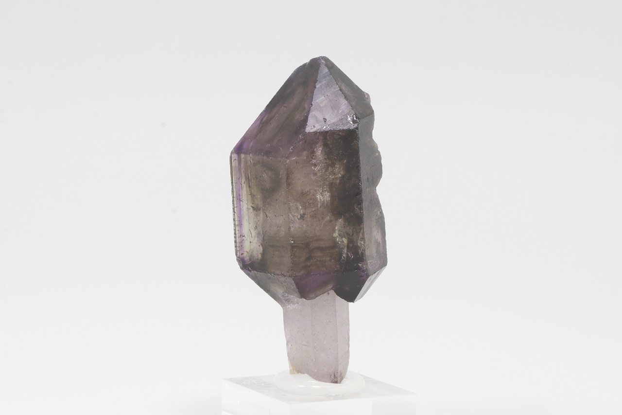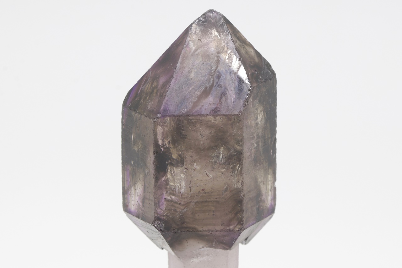 Wunderschönes Beispiel eines dunklen, stabförmigen Amethysts, gewachsen auf einem weißen Fuß. Die Größe des Stabes beträgt 50 mm.