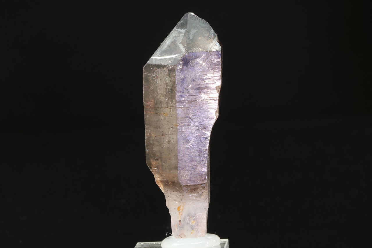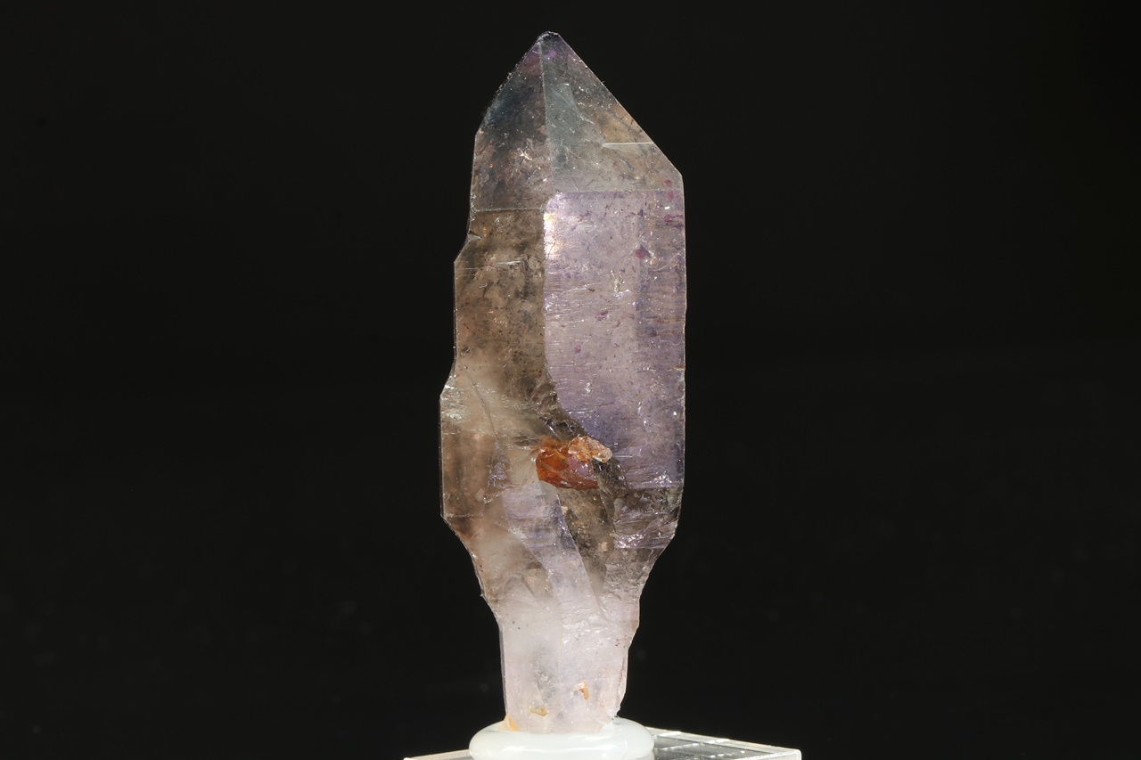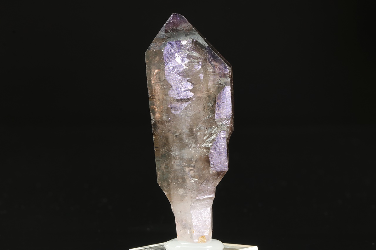 Holubníkový Amethyst von 5 cm Länge, gewachsen auf einem älteren Quarz.