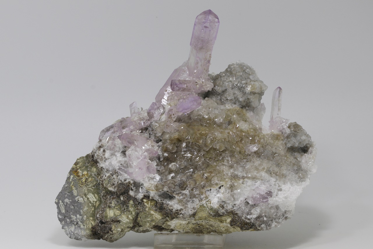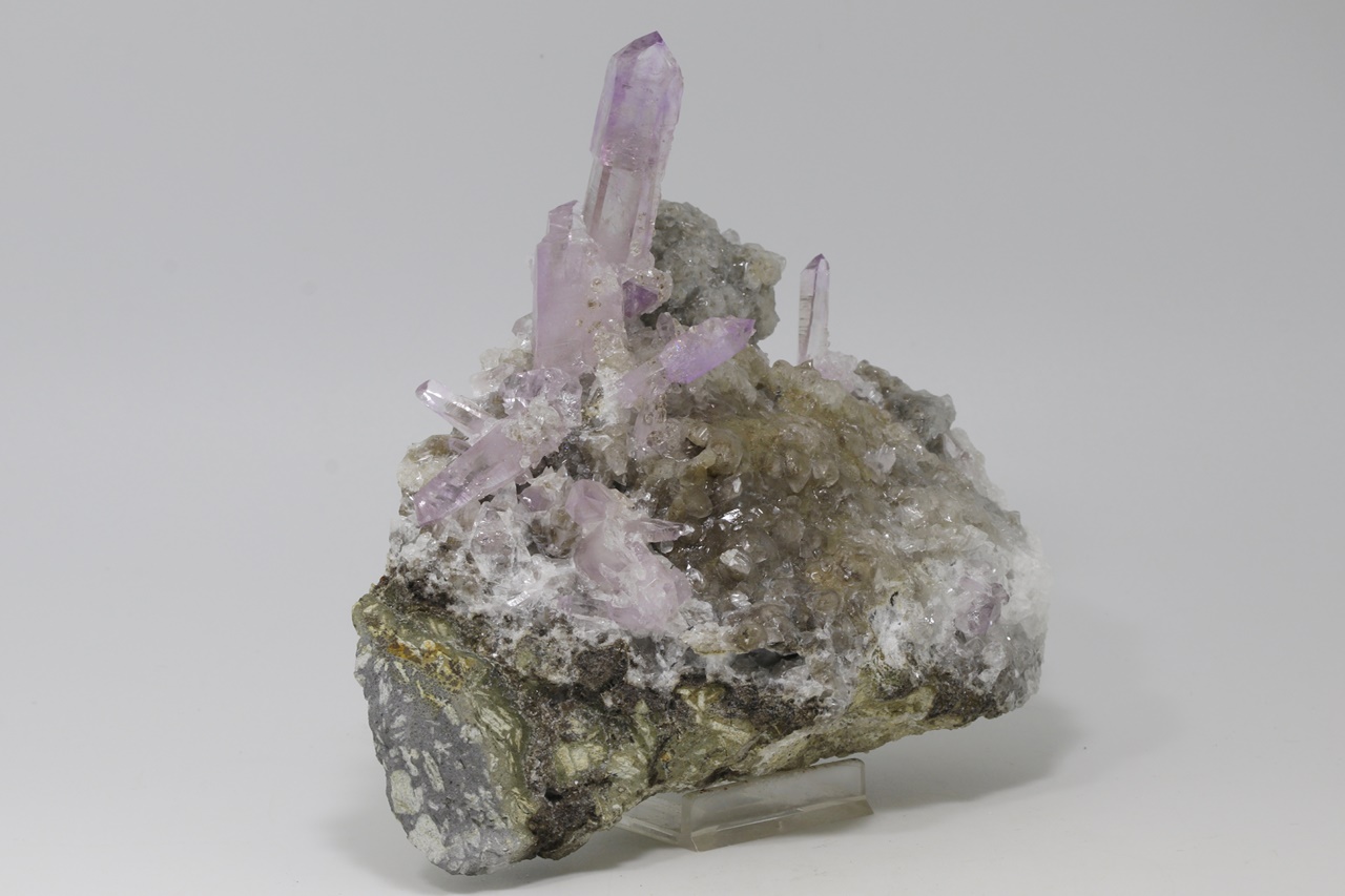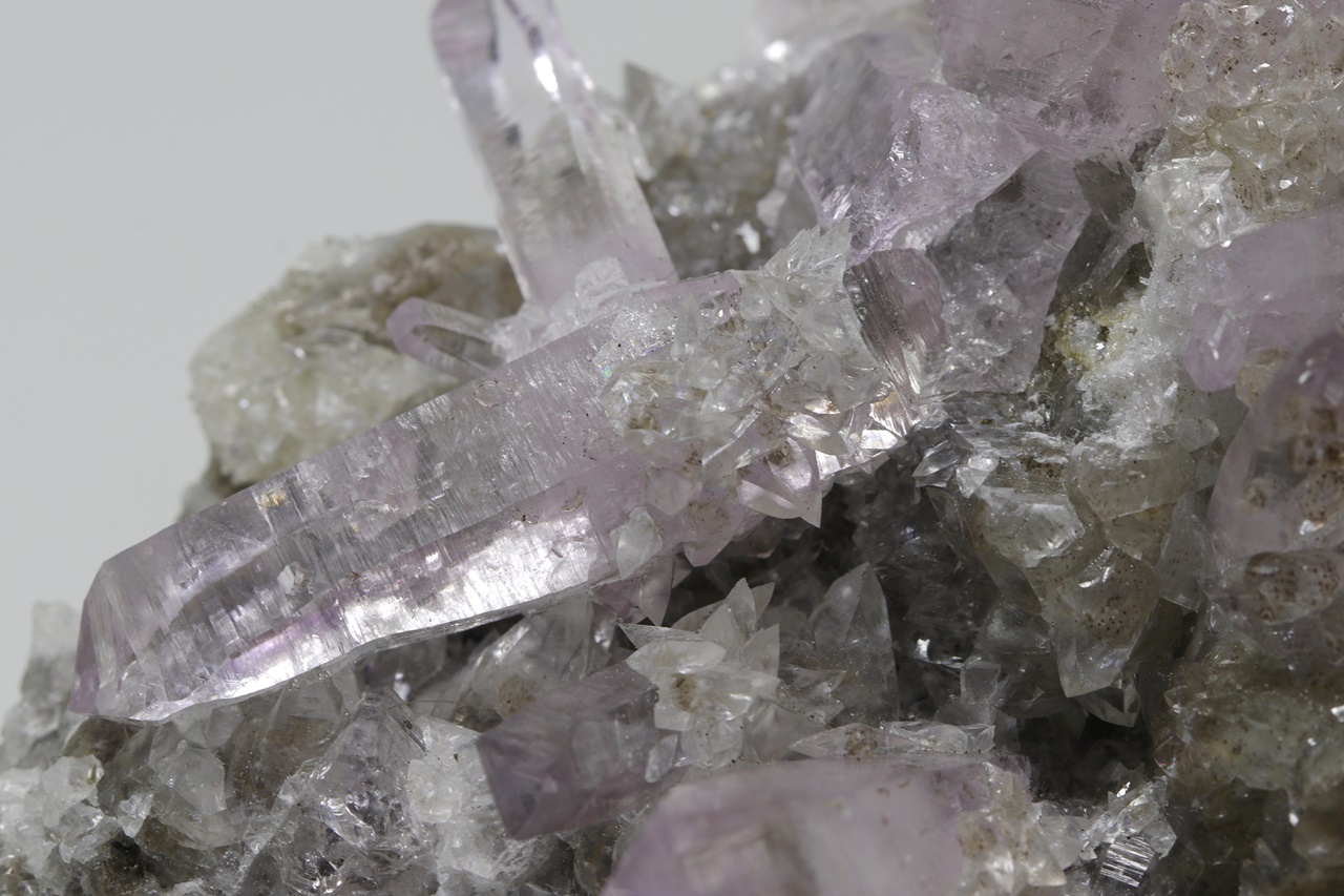 Kristalle von sehr reinem Amethyst mit Taubenschwanz-Habitus. Der größgrößte Kristall ist 5 cm groß.
