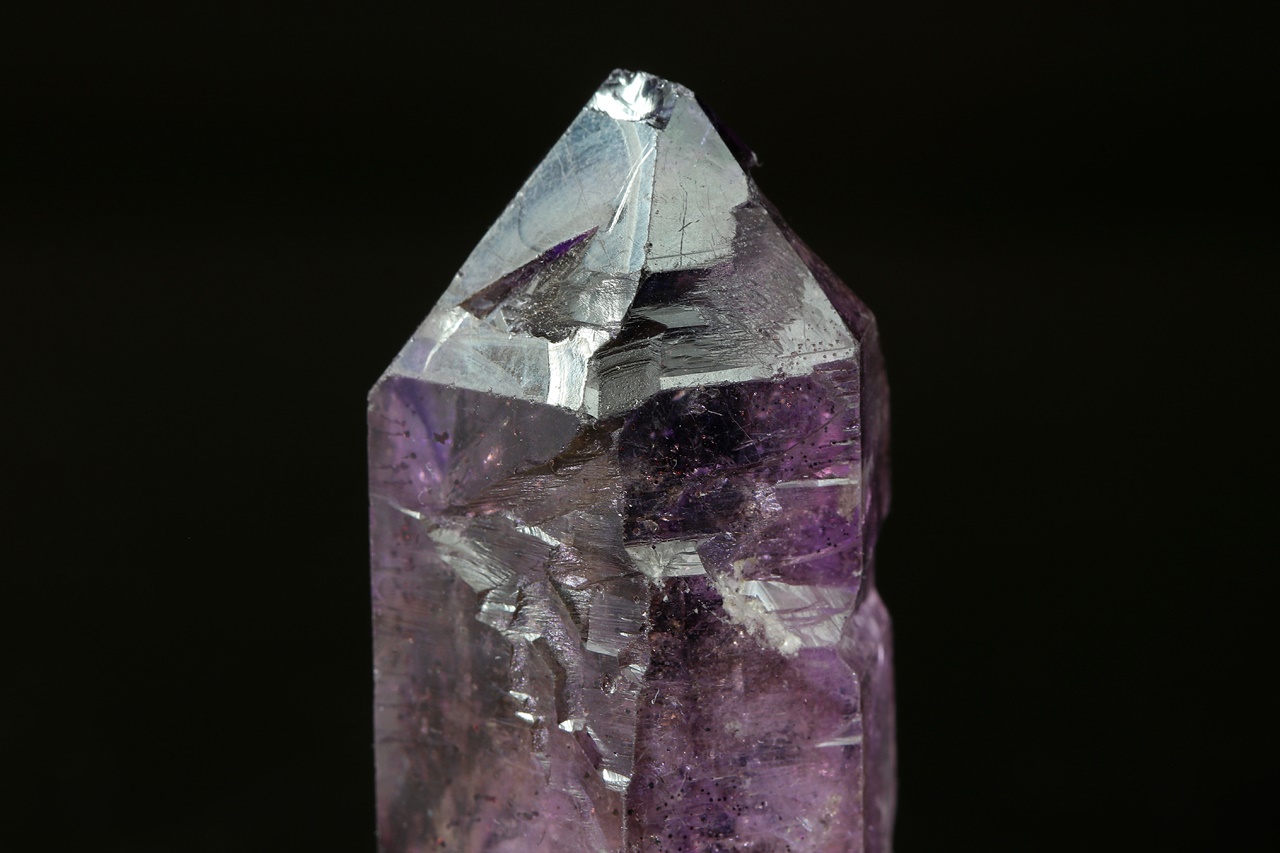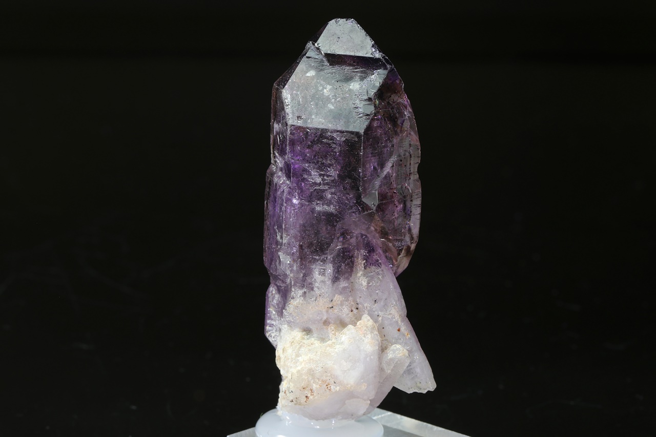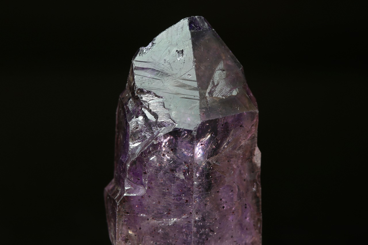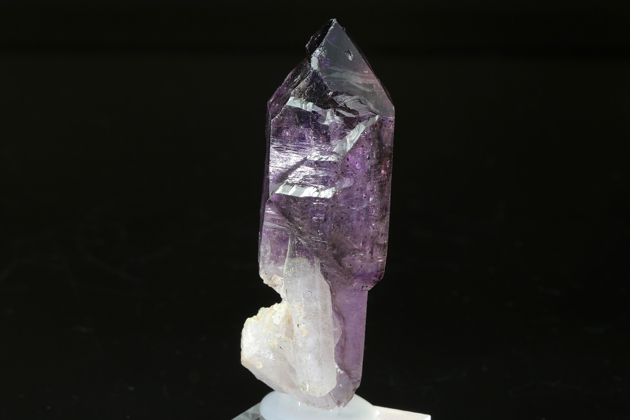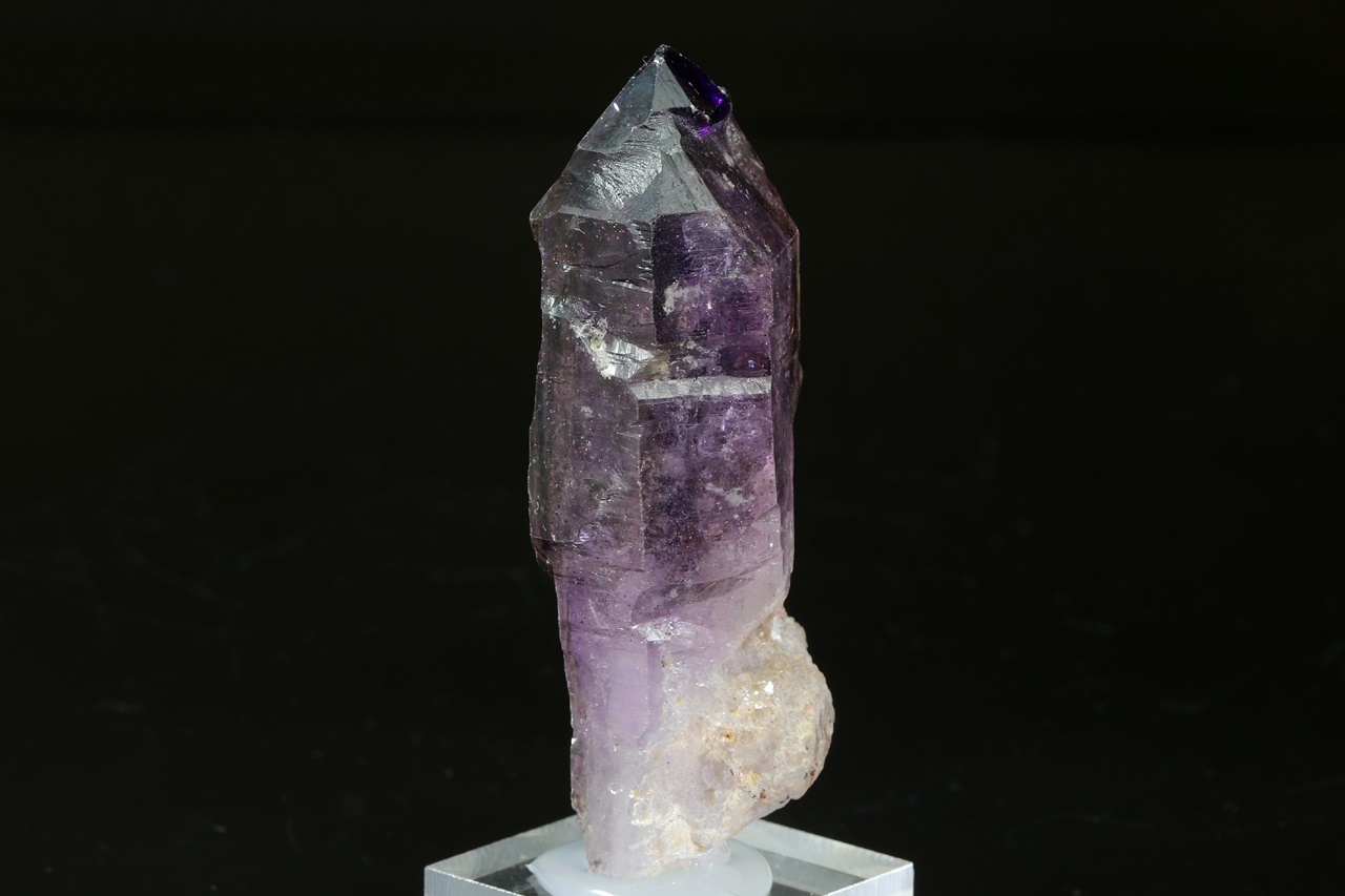 Szepterowy Amethyst mit intensiv violetter Oberseite. Die Größe des „Szepters“ beträgt 4,5 cm.