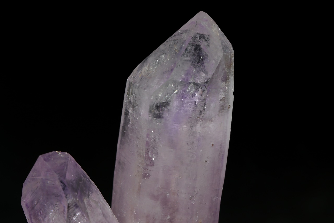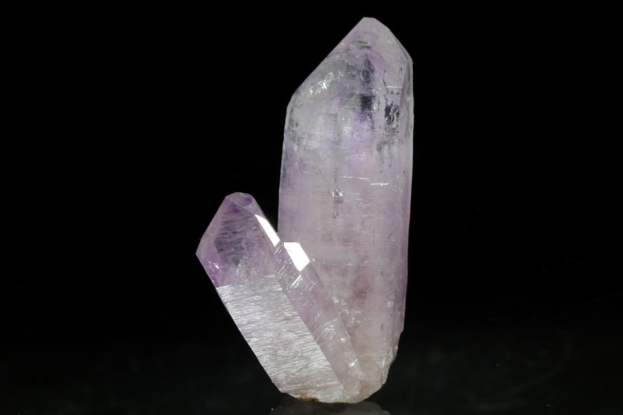 Sprossung zweier Kristalle (7 und 5 cm) von sehr gut kristallisiertem Amethyst.