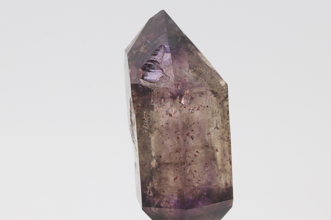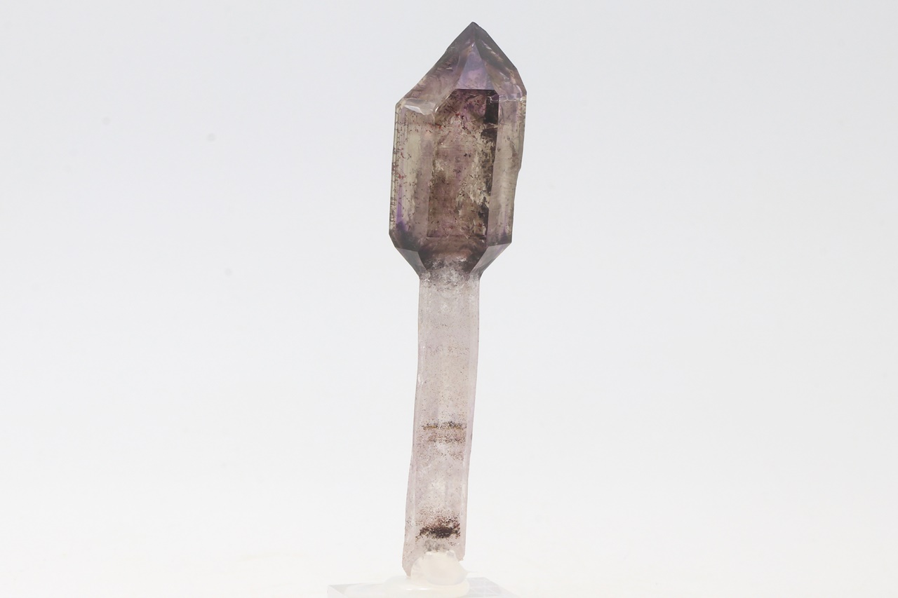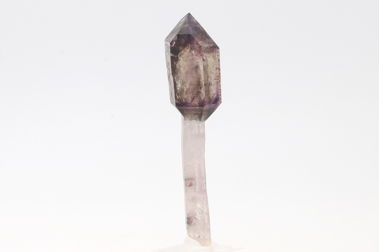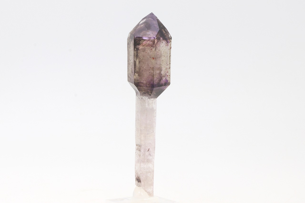 Ästhetischer Beweis eines unbeschädigten zepterartigen Amethysts mit Phantomkristallen. Der obere, intensiv violette Kristall ist 4,5 cm groß.