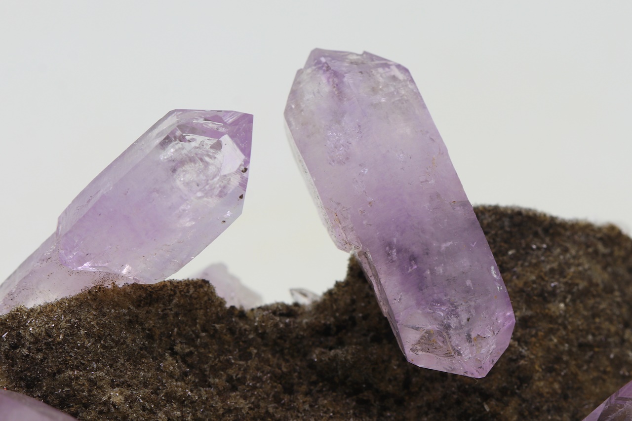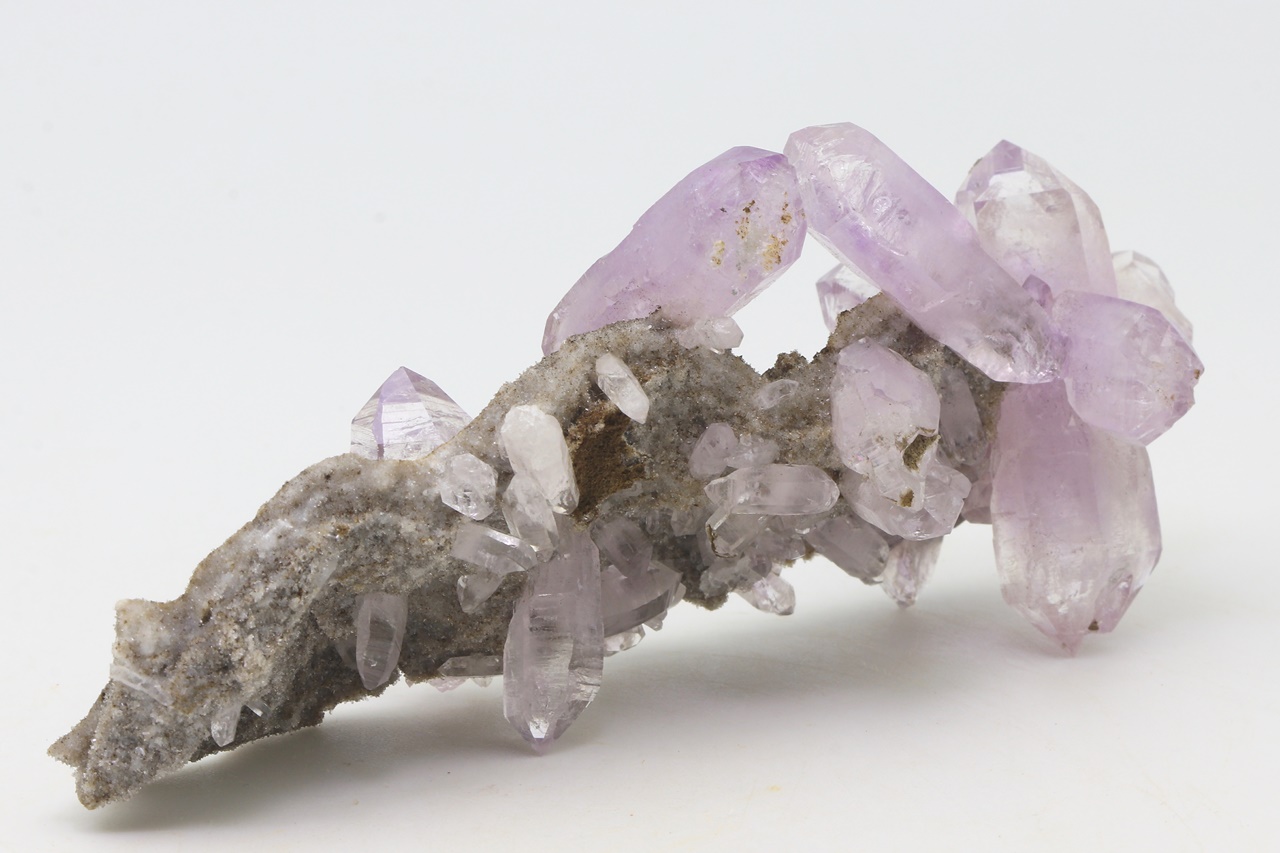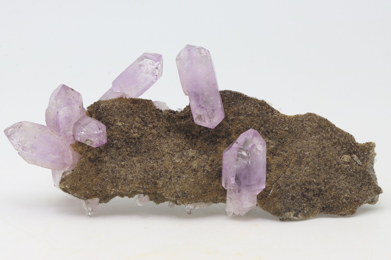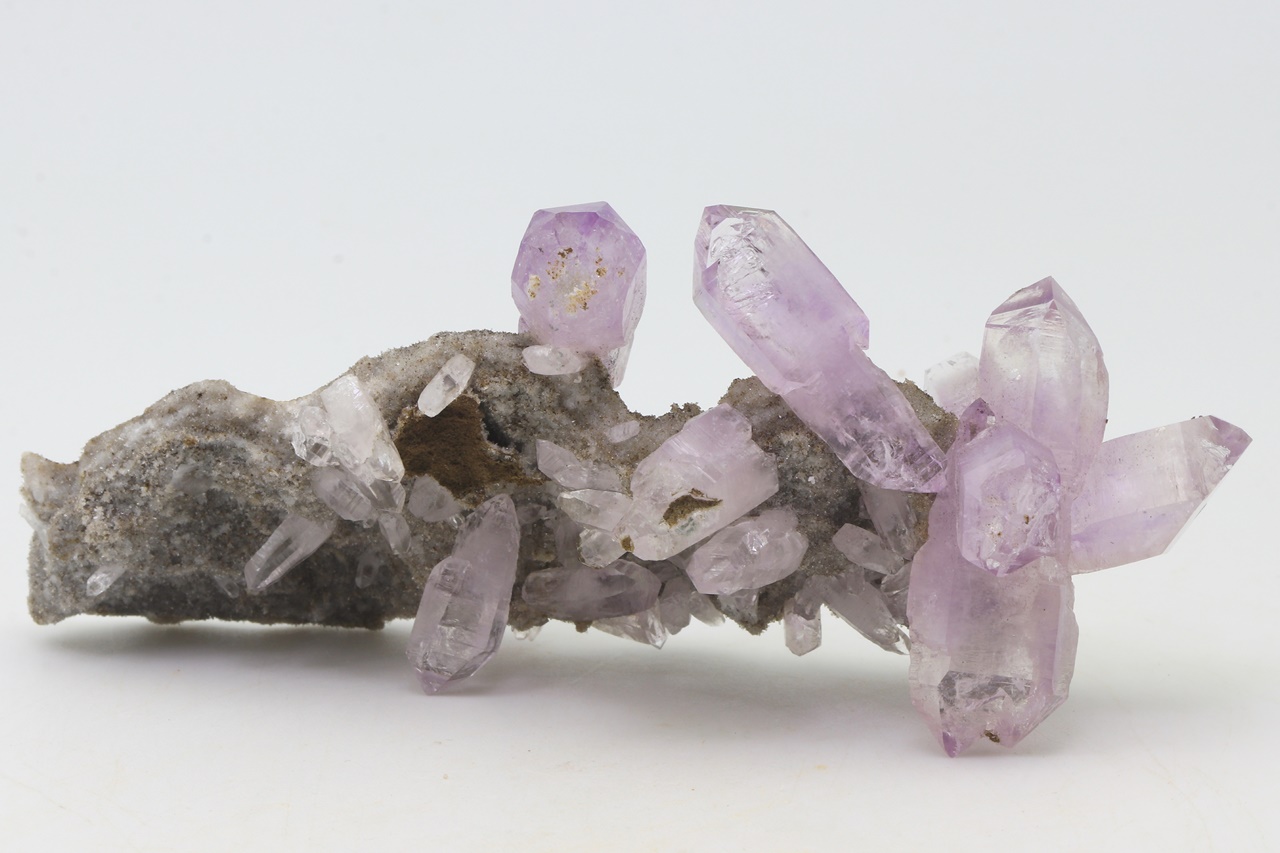 Wunderschönes Exemplar von reinen, bis zu 3 cm großen Amethysten, gewachsen auf einer Grundplatte.