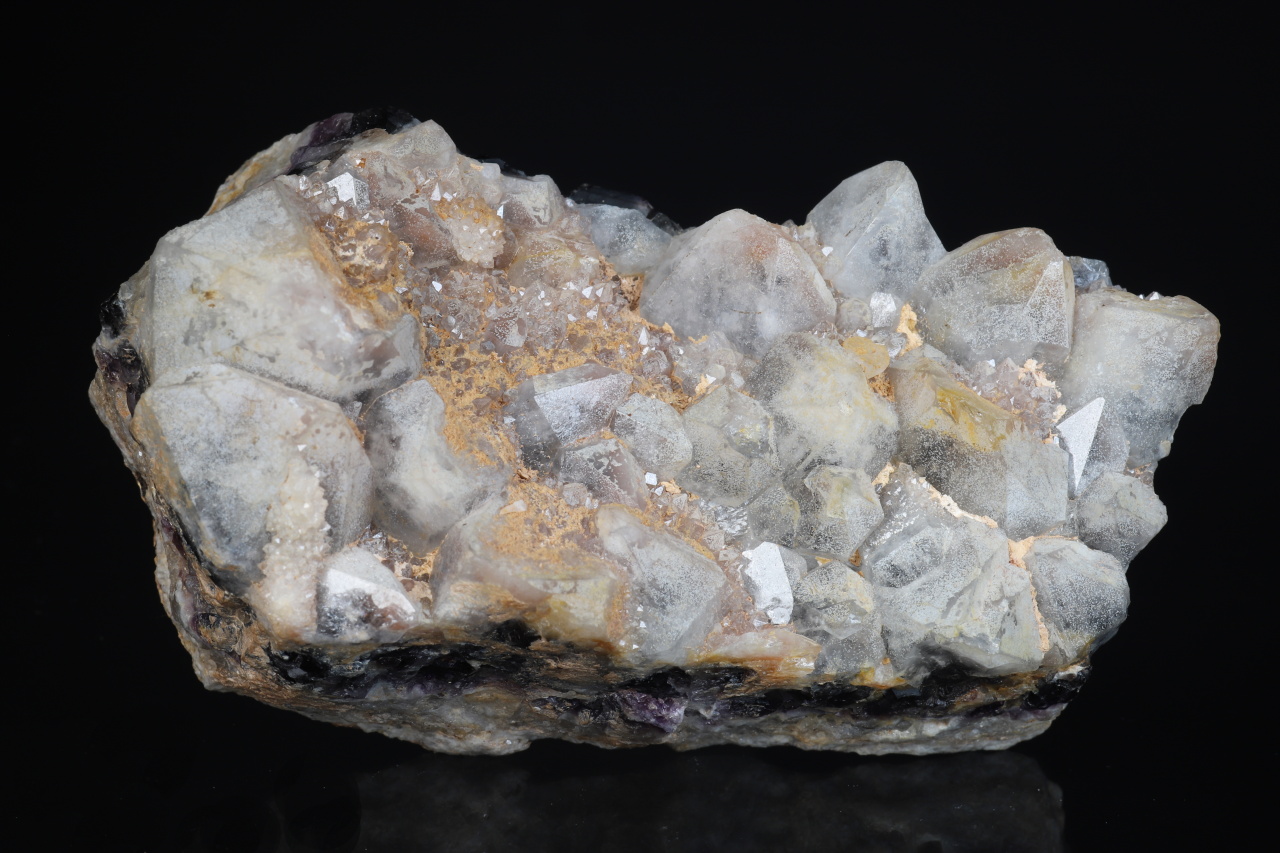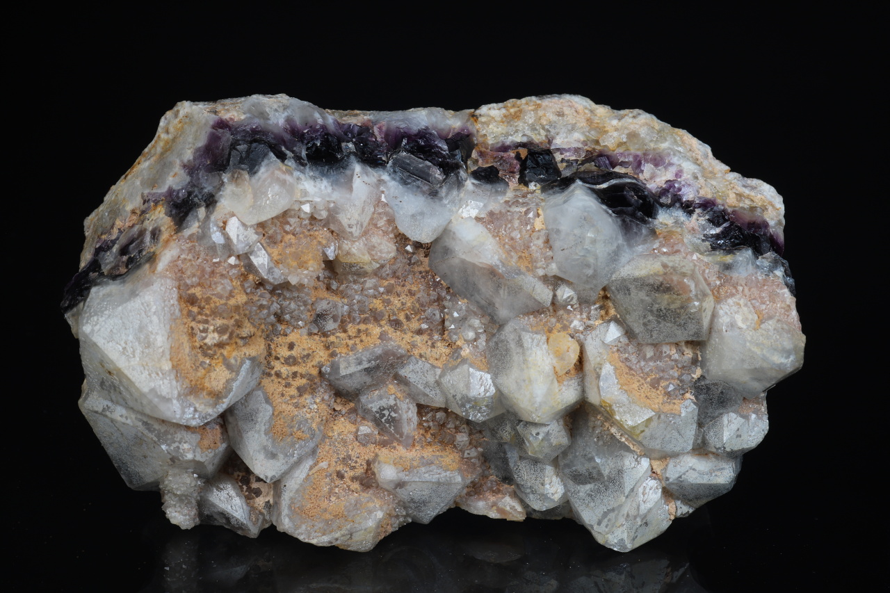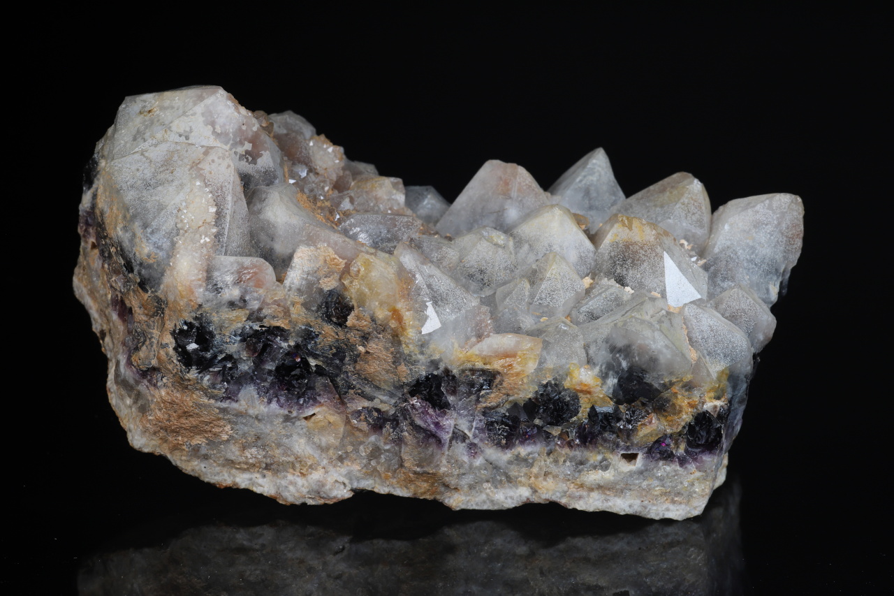 Zonální žíla křemene s tmavým ametystem ukončená bílými krystaly. Estetický vzorek pochází z jihočeského naleziště Jickovice u Milevska.