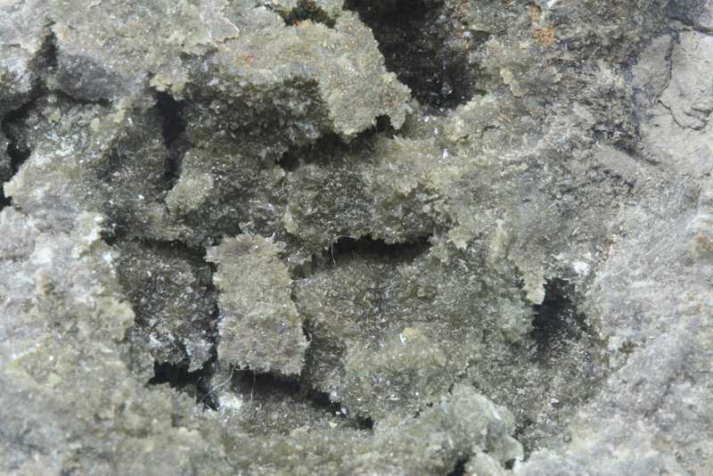 Phosphat-Konkretion gefüllt mit bis zu 1 mm großen Kristallen von Anapait aus Spanien. Beispiel kleiner grüner Anapait-Kristalle .