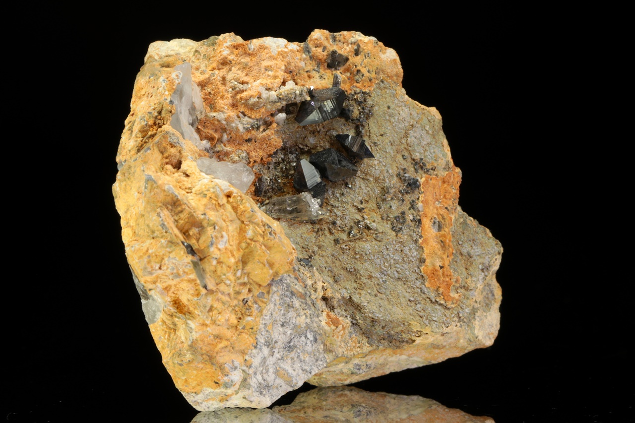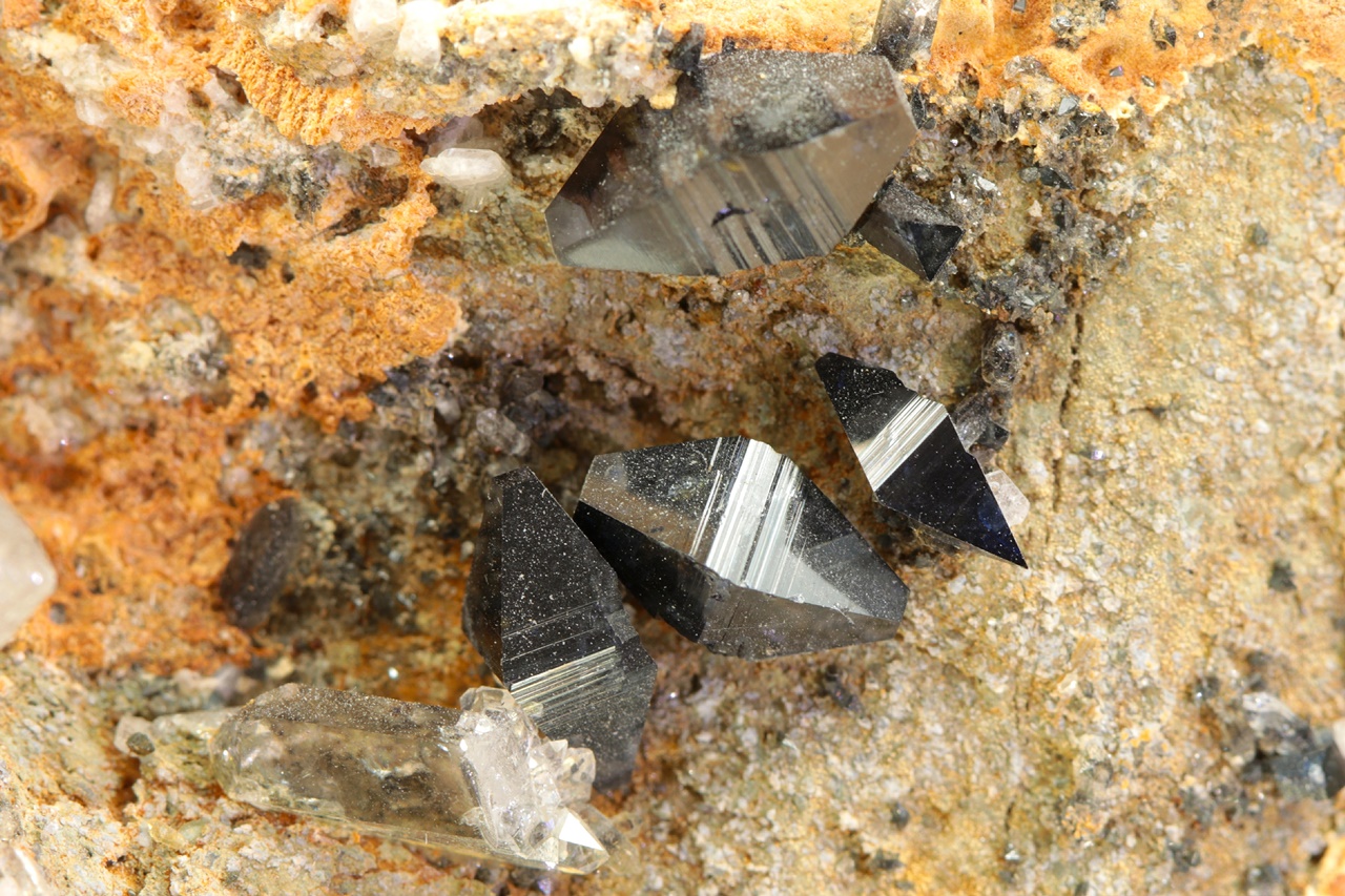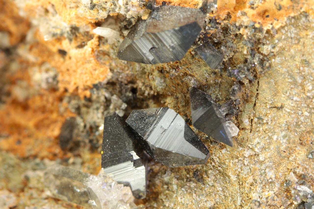 Glänzende dipyramidale Anatas-Kristalle, bis zu 9 mm groß, gewachsen in einer Höhle.