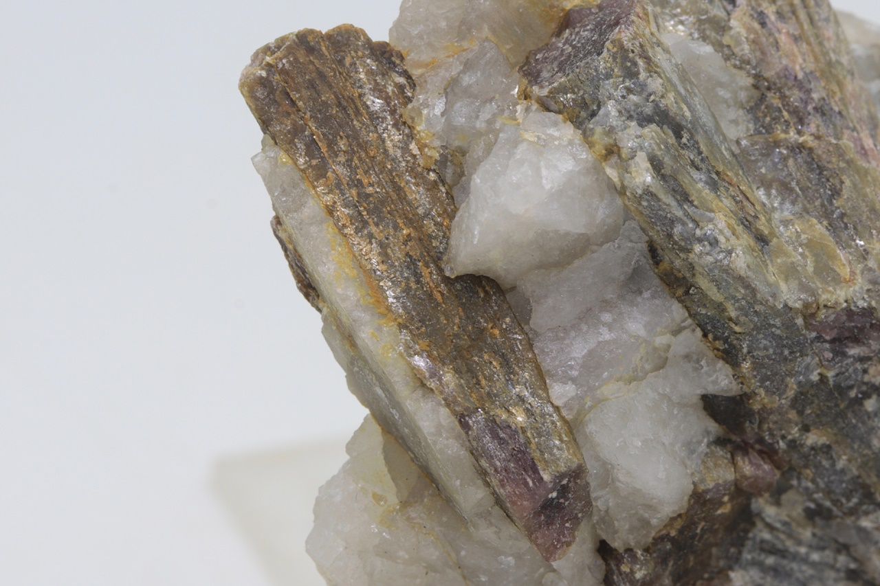 Bis zu 6 cm große Kristalle von zonalem Andalusit im Quarz.