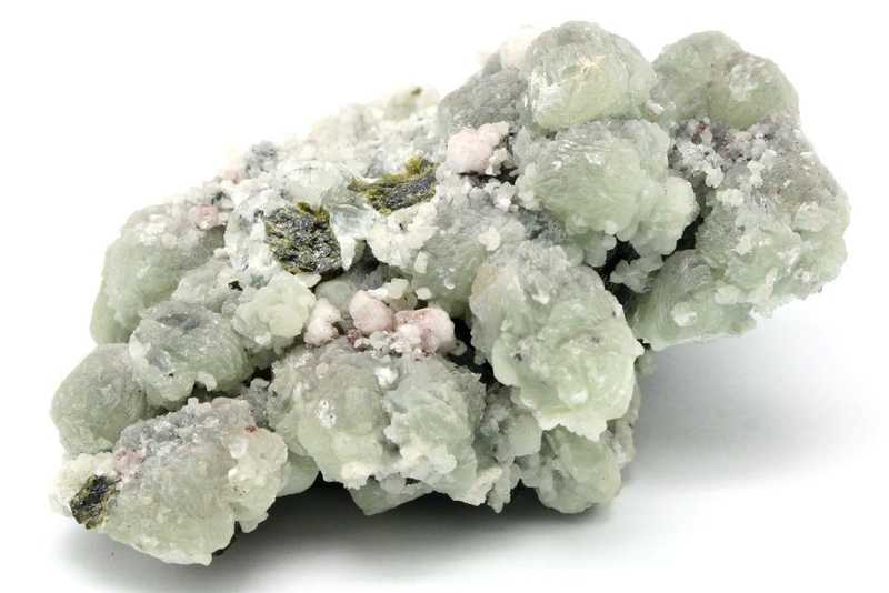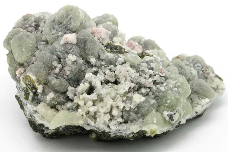 Attraktive Epidot und Prehnit aus Kasachstan. Eine sehr schöne Probe von glänzenden grünen Epidot-Kristallen, bewachsen mit Prehnit.