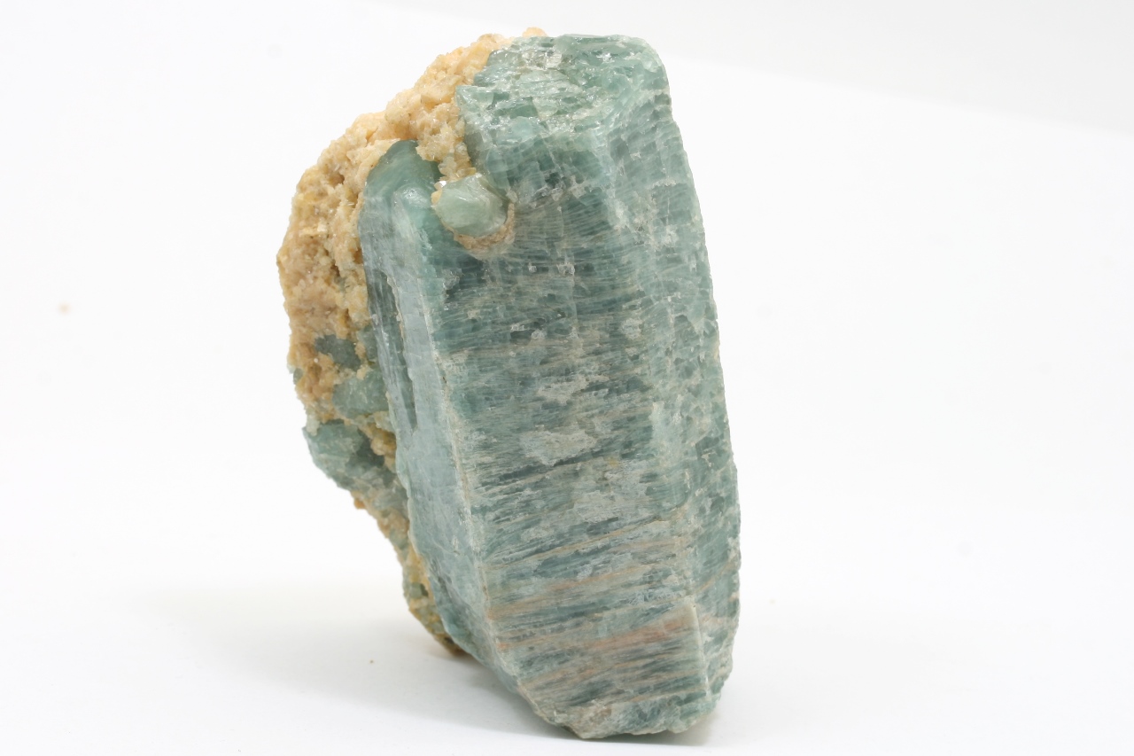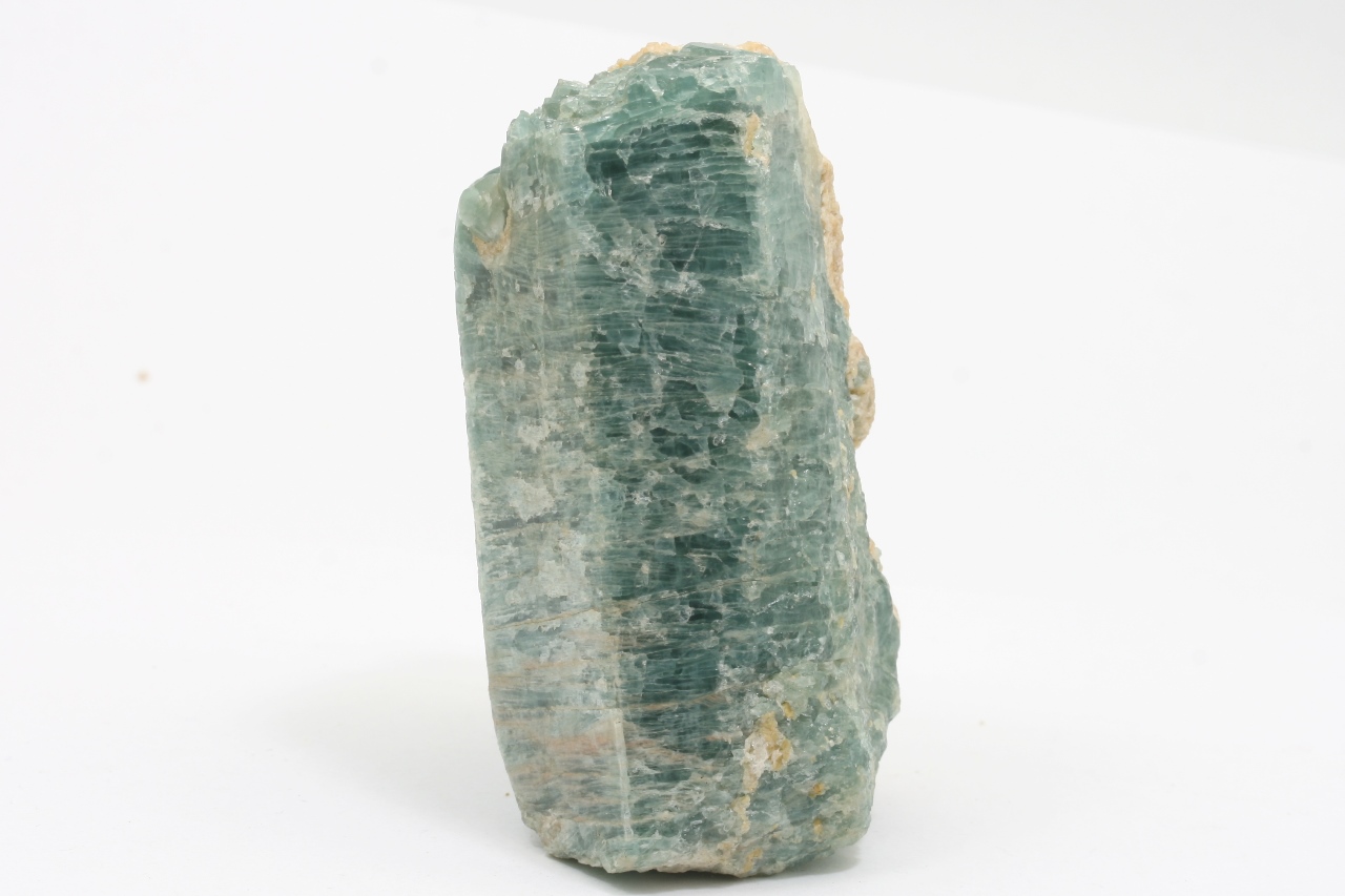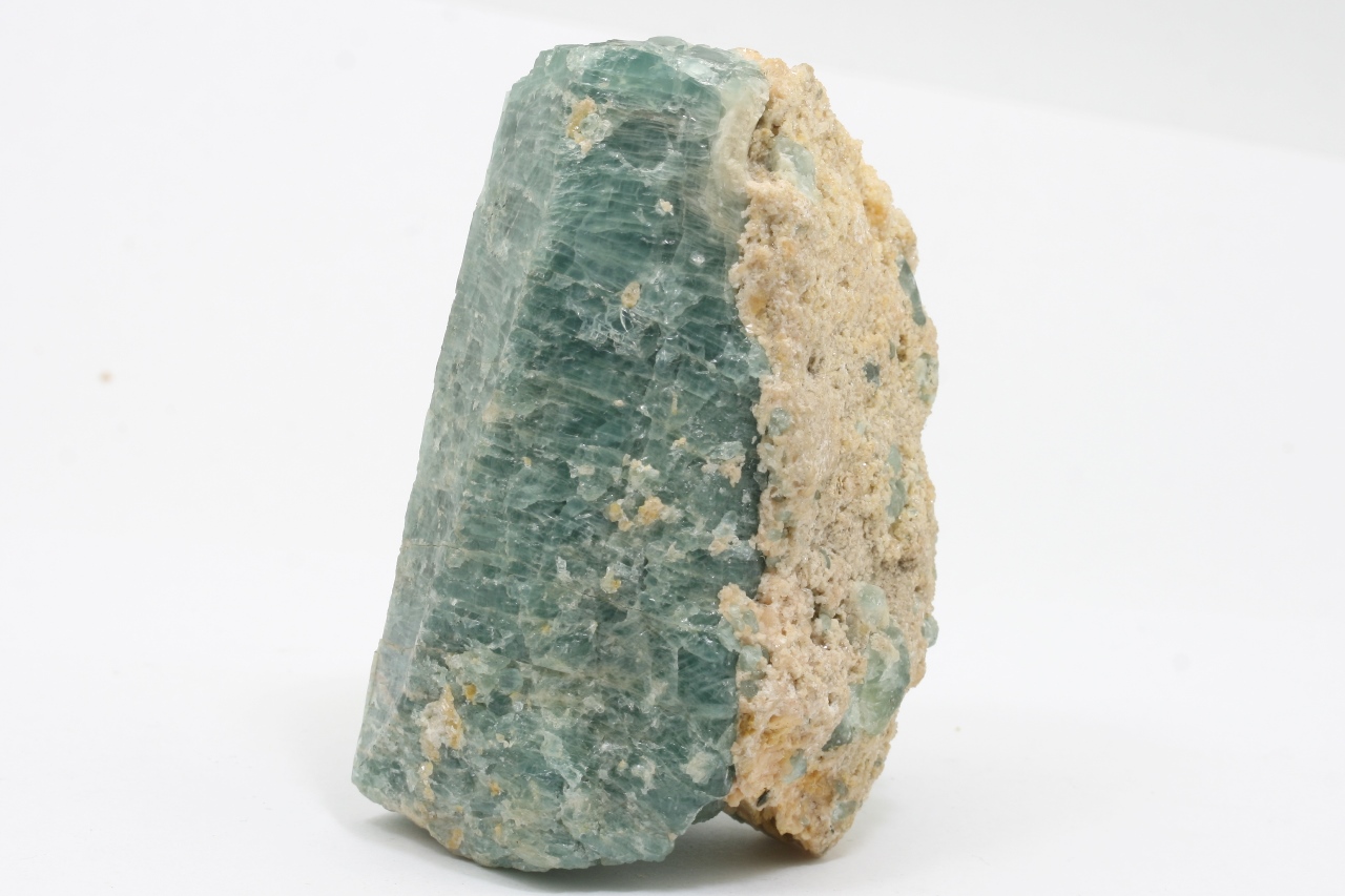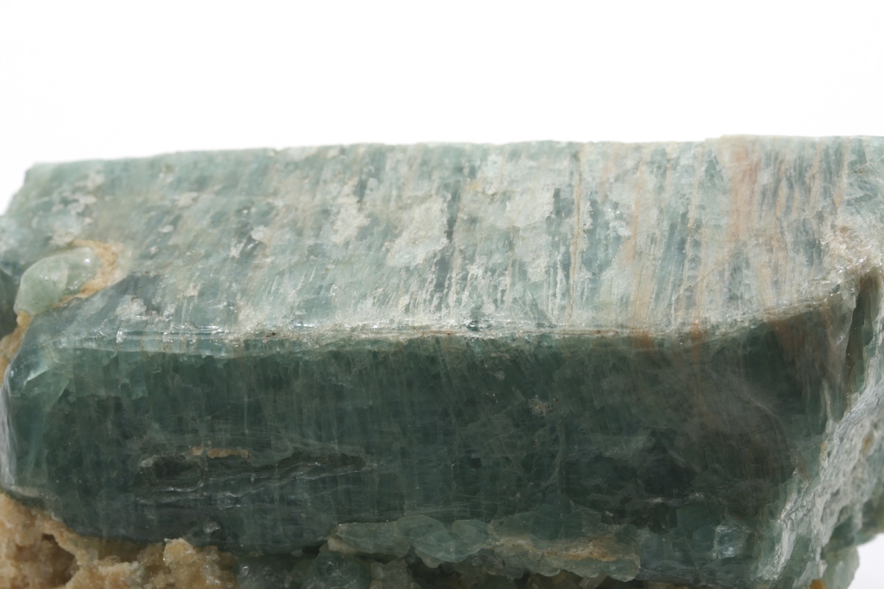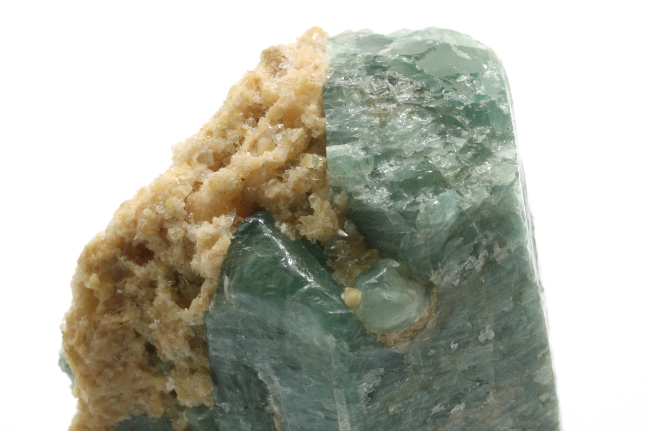 Großer Kristall von blauem Apatit mit orangefarbenem Calcit aus einer bekannten Lokalität am Baikalsee.