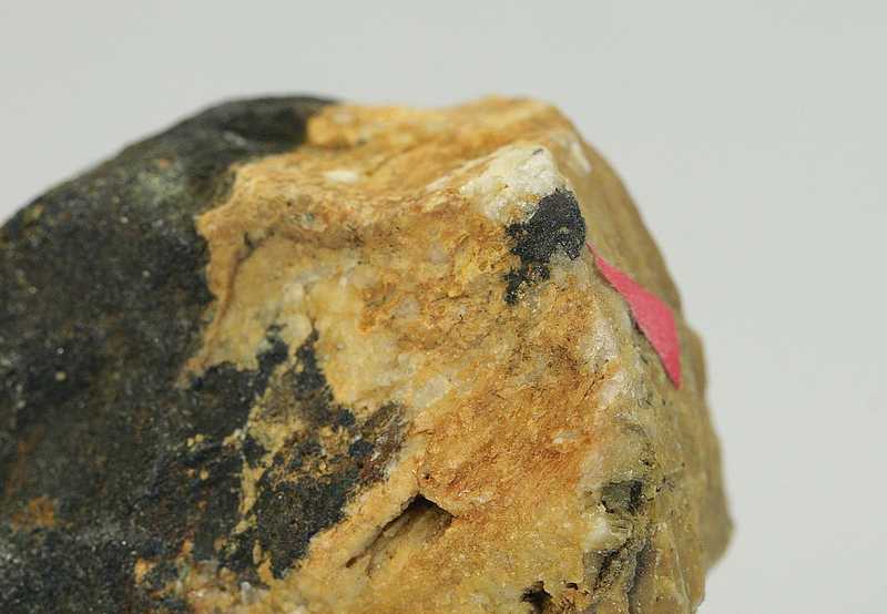 Apuanit aus der Typlokalität Buca della Vena Mine, Toskana, Italien. Dunkles Aggregat des seltenen Oxids aus Eisen und Antimon【4:5†cz_to_de.json】.
