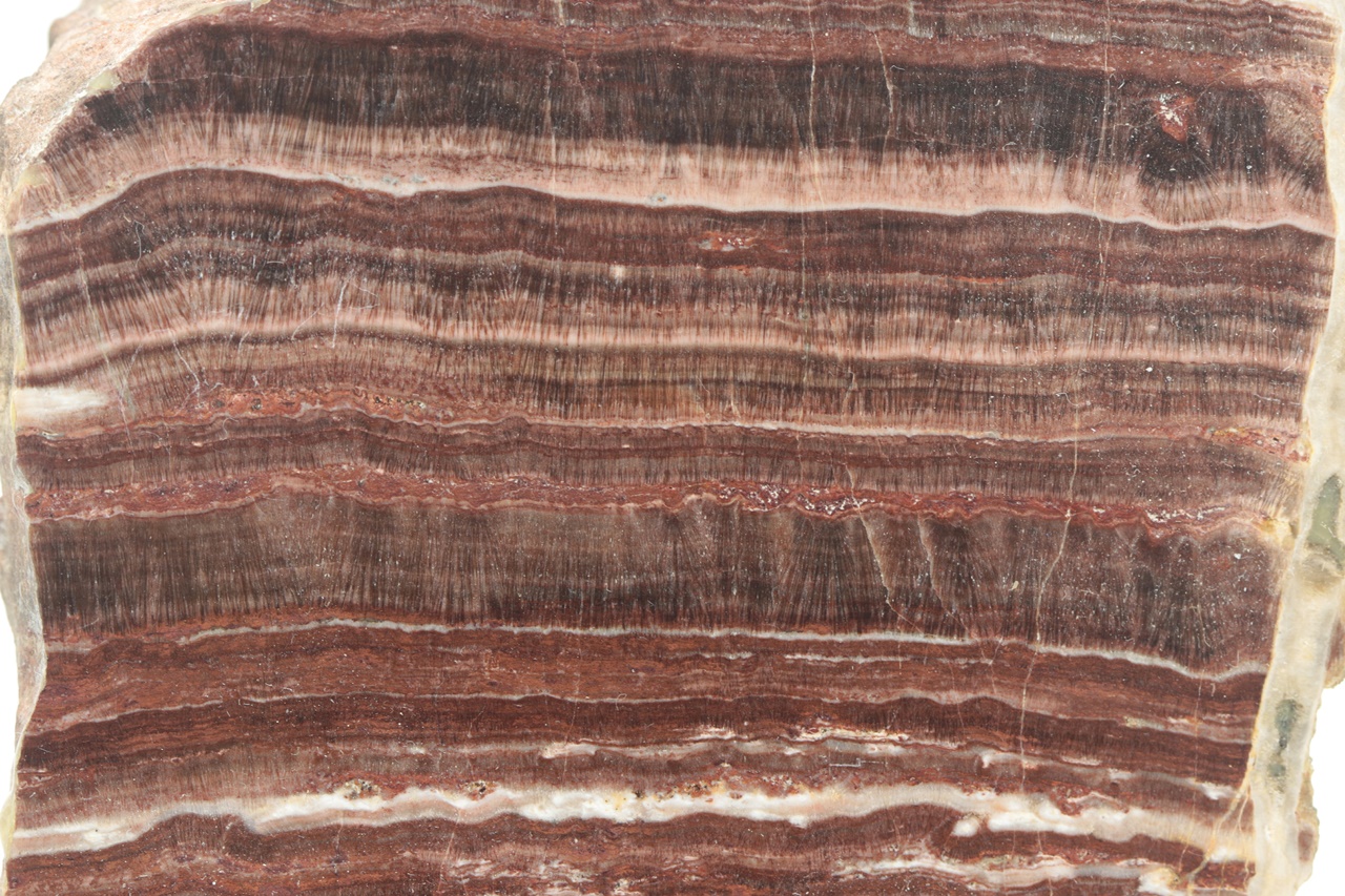 Polierter Stufe des schichtförmigen Aragonits. Die Stufe stammt aus dem Jahr 1987 .