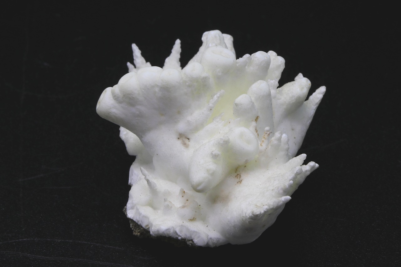Schneeweiße Aragonit-Aggregate sind charakteristisch für diesen Standort .