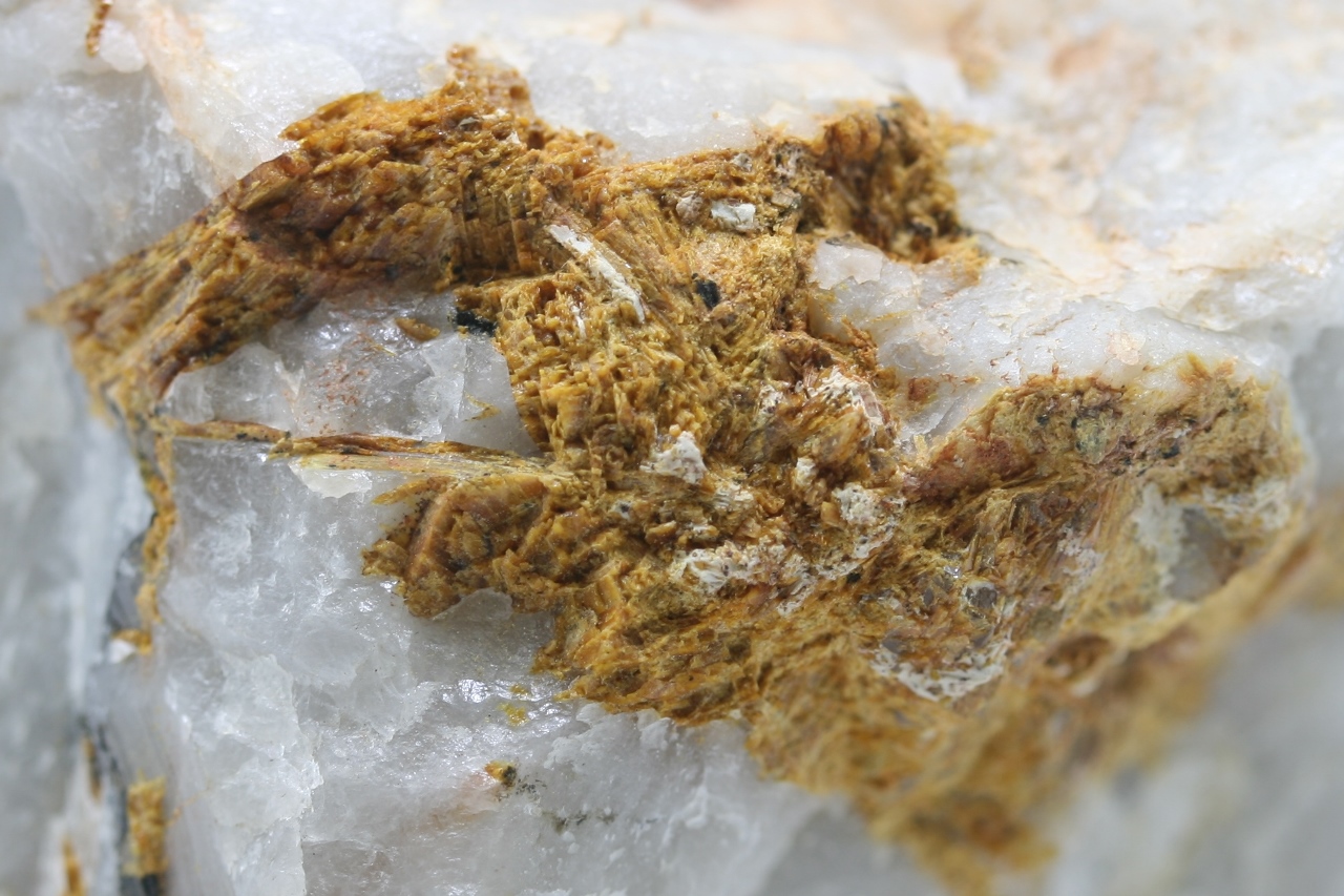 Gelbe Kristalle und Aggregate von Arsen-Vanadium-Silikat aus der Typlokalität.