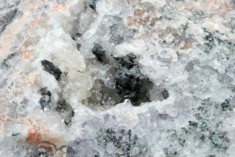 Probe des Silberminerals – Argentit aus dem Lagerstätte Moldava, Tschechische Republik. Schöne Probe von mehreren Aggregaten des Silbersulfids Argentit mit einer Größe von bis zu 4 mm .