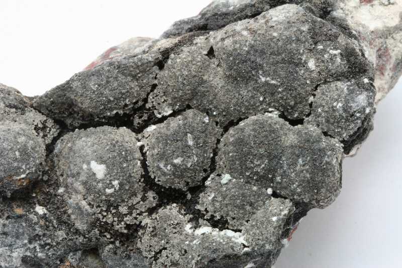 Große Stufe von Arsen aus dem Jáchymov-Uranlagerstätte. Stufe von Jáchymov-Arsen und weißem Arsenolith .