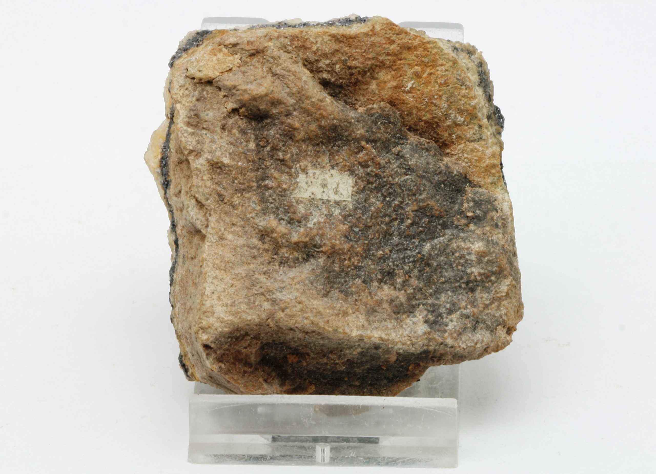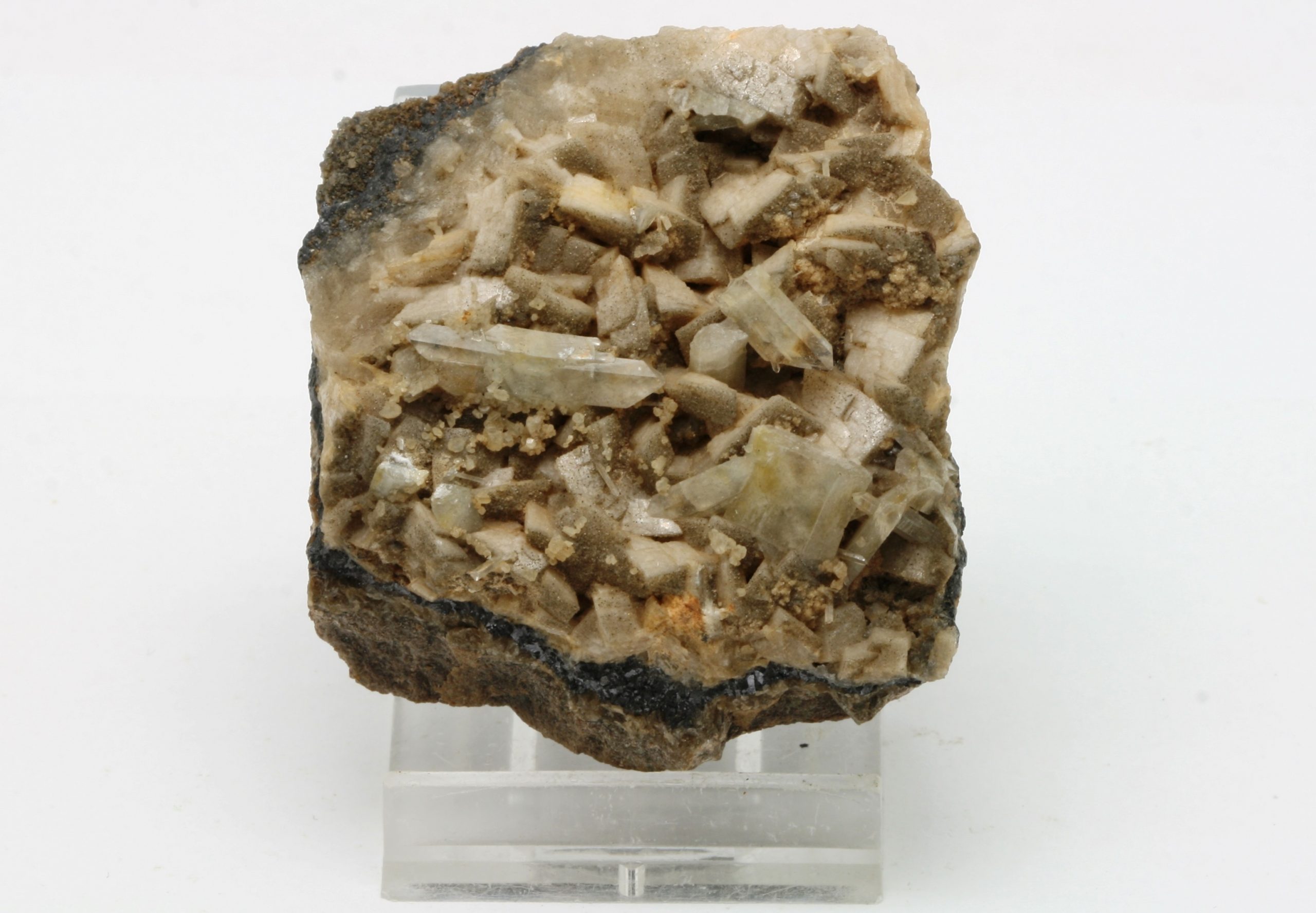 Historischer und schöner Beispiel von Baryt auf Magnetit, wo auch ein schönes Zwilling der Baryt-Kristalle sichtbar ist.