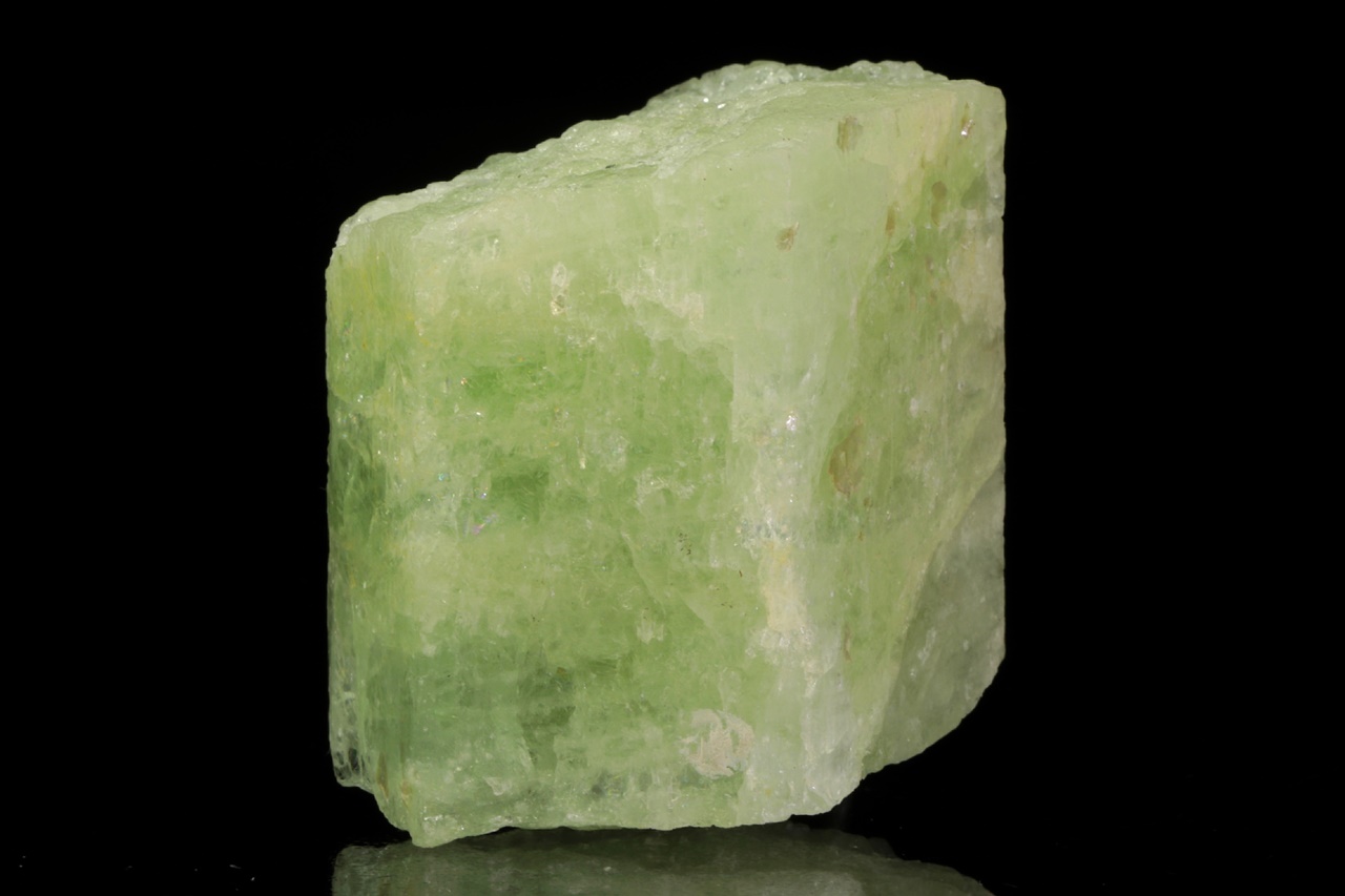 Světlý, žluto zelený Krystal Berylu ukončený Prizmatem.